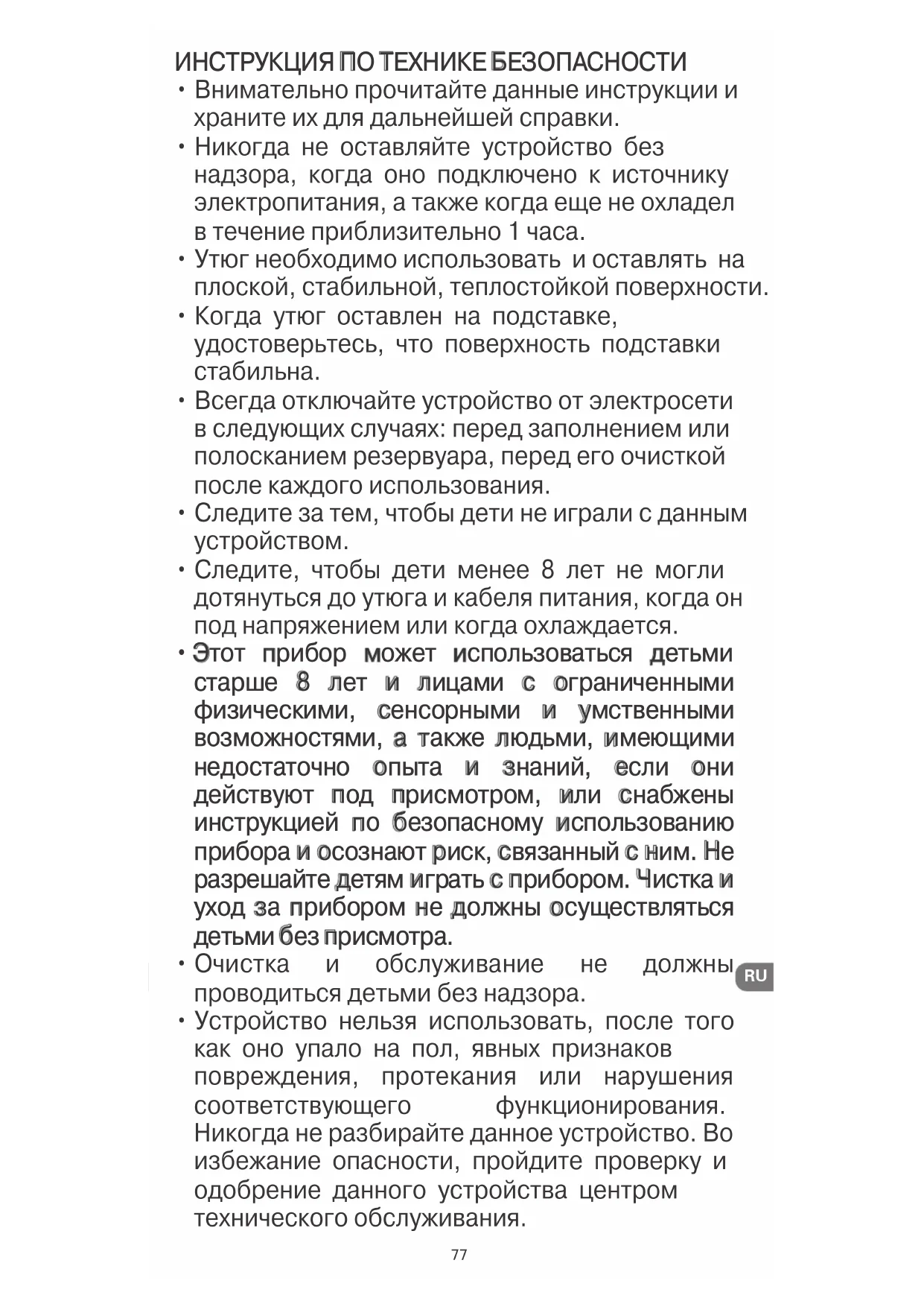 разрешайте детям играть с прибором. Чистка и