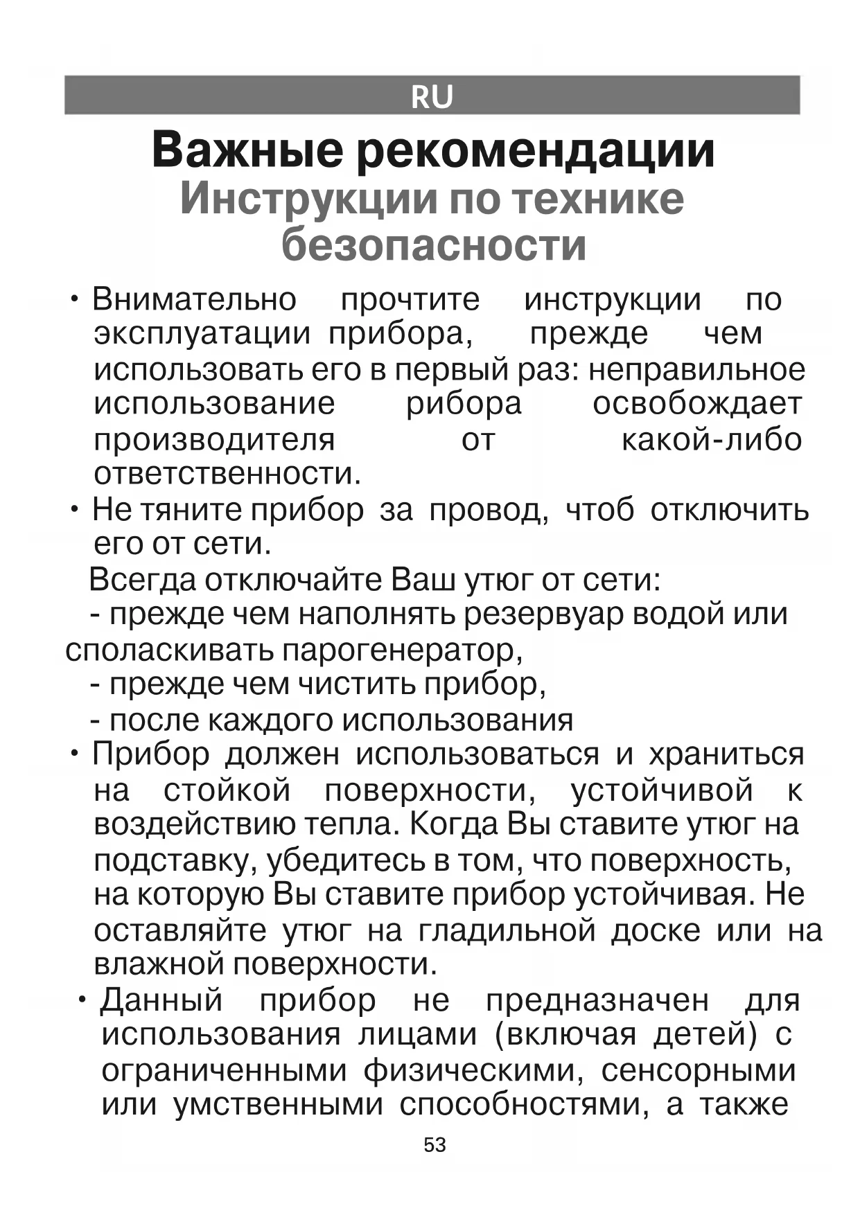 • Ваш паровой утюг – электрический прибор: его следует использовать в обычных