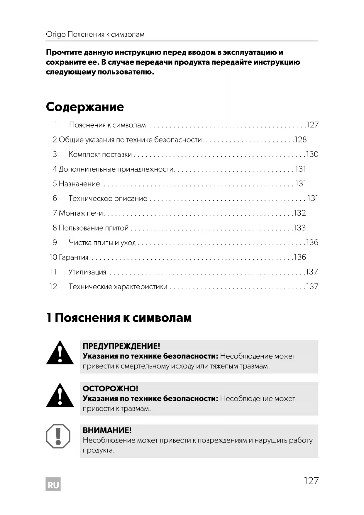 Origo-A100-A200--O-16s.book Seite 128 Freitag, 18. Mai 2018 10:40 10RU Origo Общие указания по технике безопасности