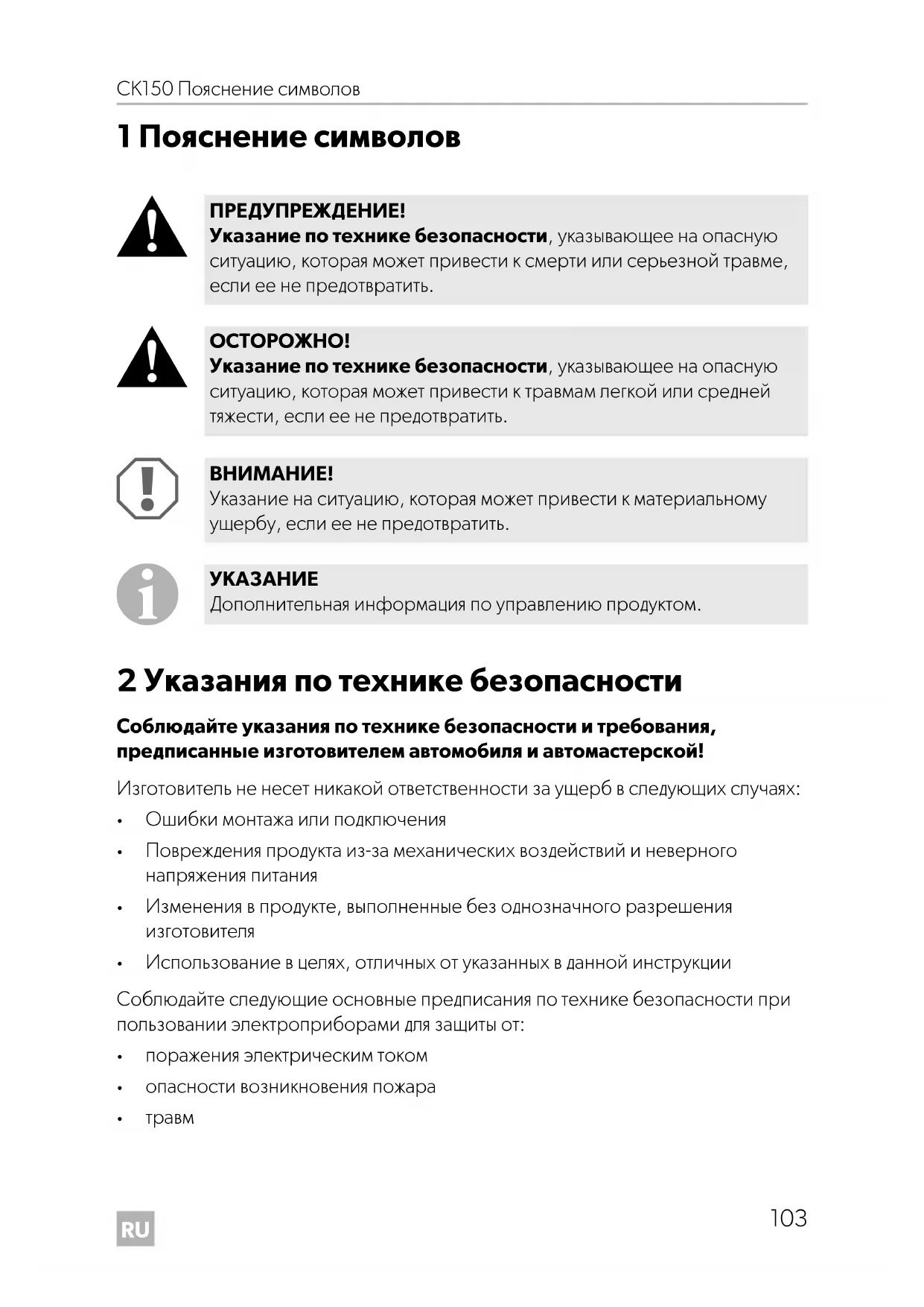 2 Указания по технике безопасности . . . . . . . . . . . . . . . . . . . . . . . . . . . . . .103