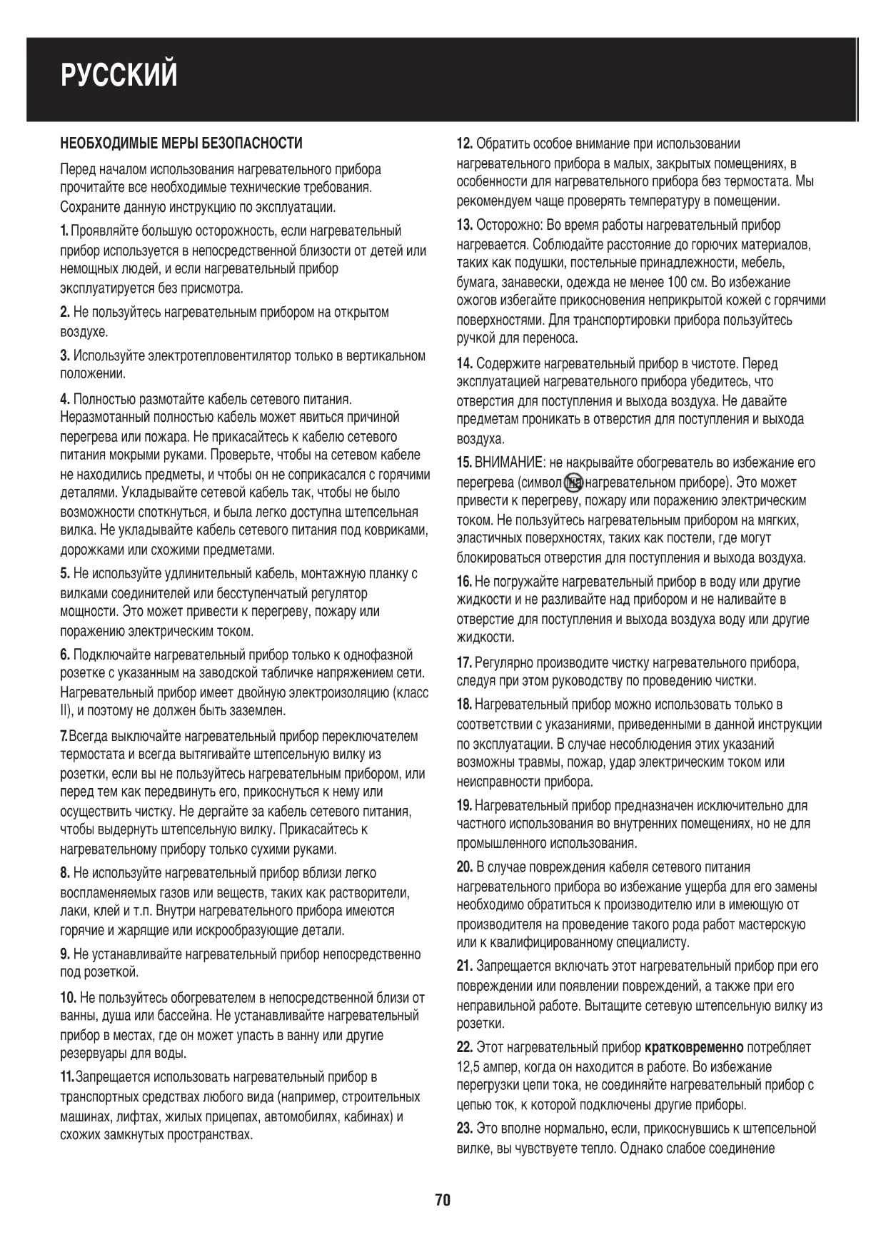 21. Запрещается включать этот нагревательный прибор при его