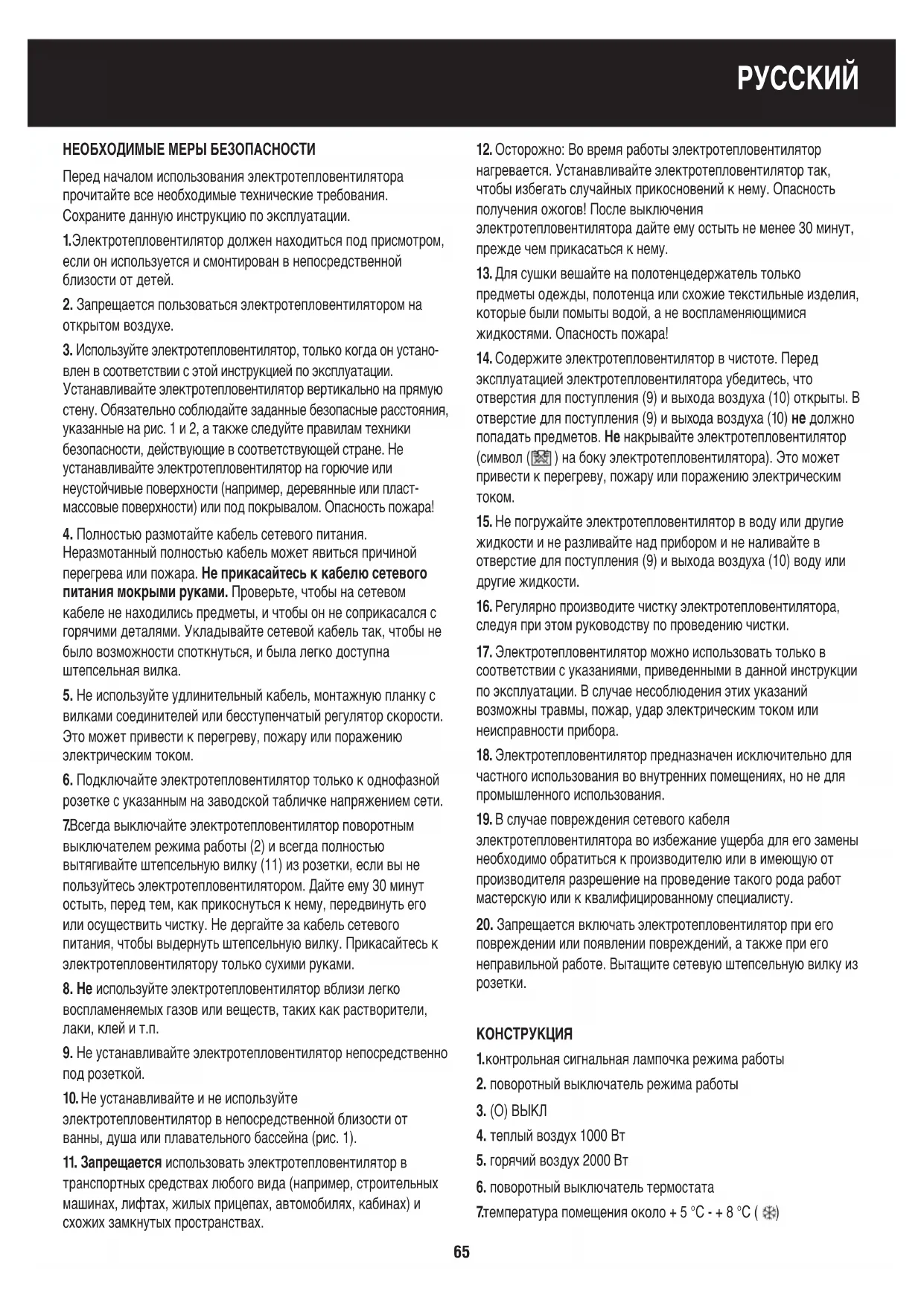 1. Электротепловентилятор оборудован защитой от перегрева,