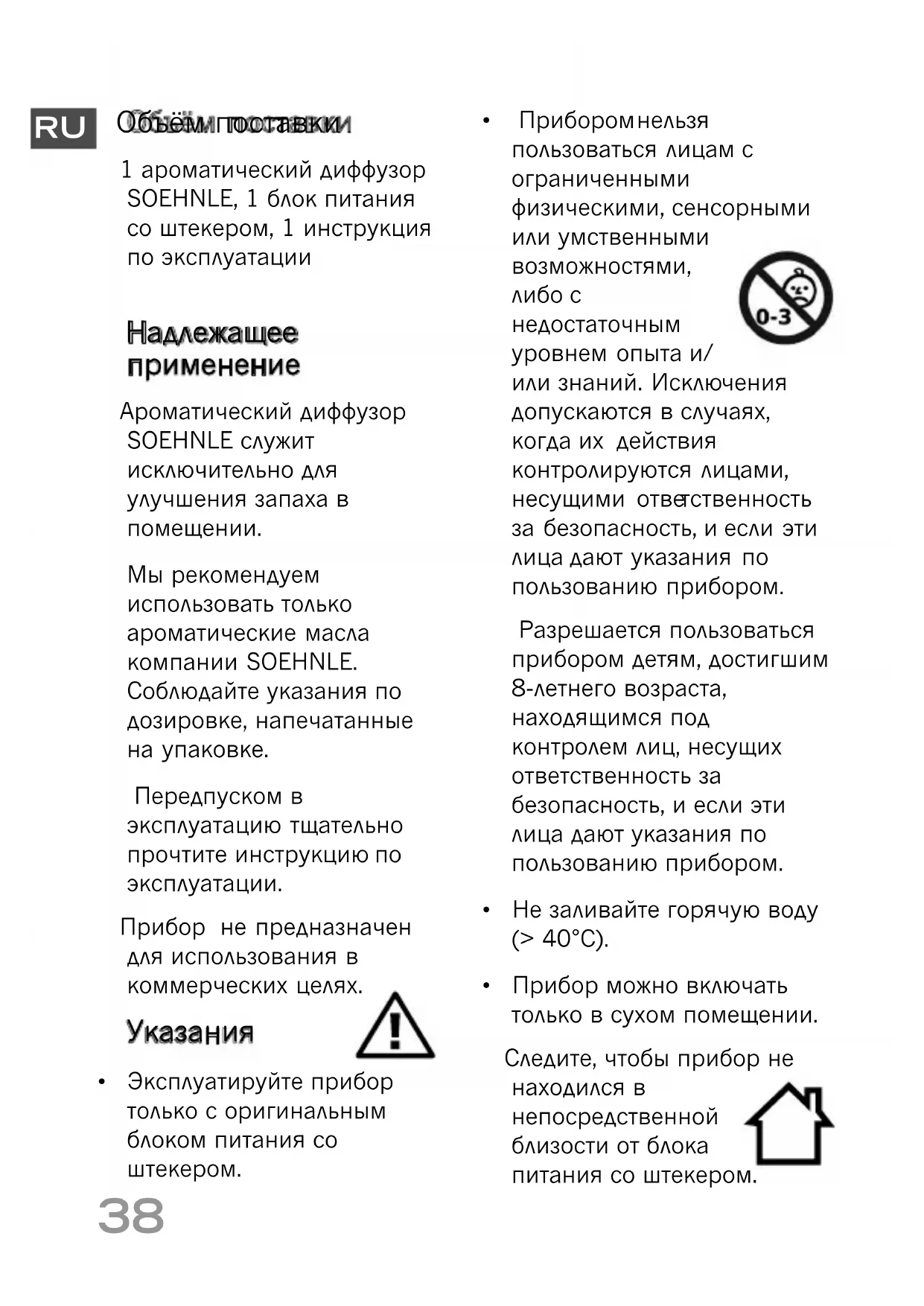 068025_Valencia_Content_6008-C_15-09-2014.indd 39 16.09.2014 09:58:3540 A. Пуск в эксплуатацию Заливайте ароматическое масло в прибор, только отключив его от блока
