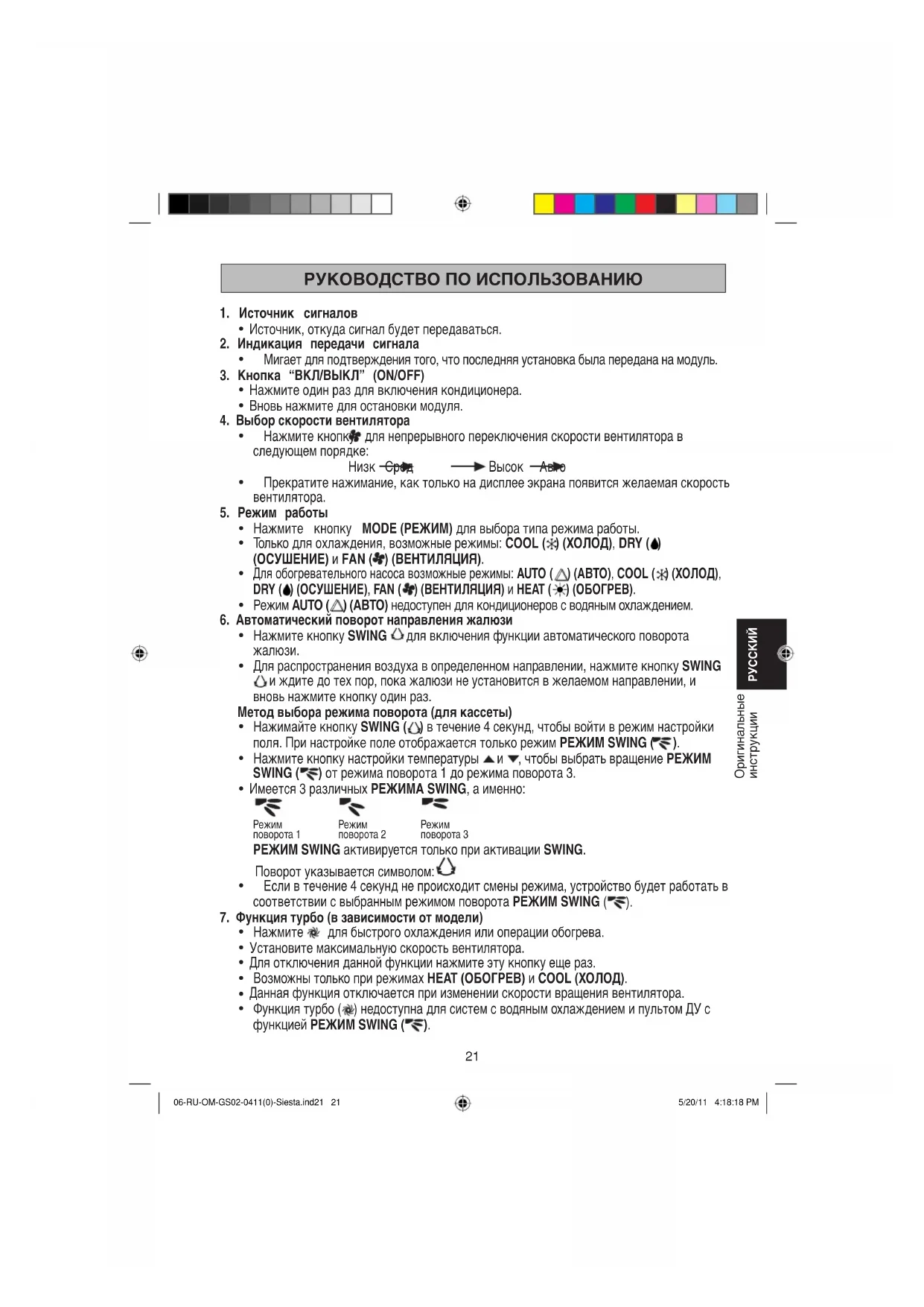 РУКОВОДСТВО ПОЛЬЗОВАТЕЛЯ Siesta OMGS020411(1) DAIKIN