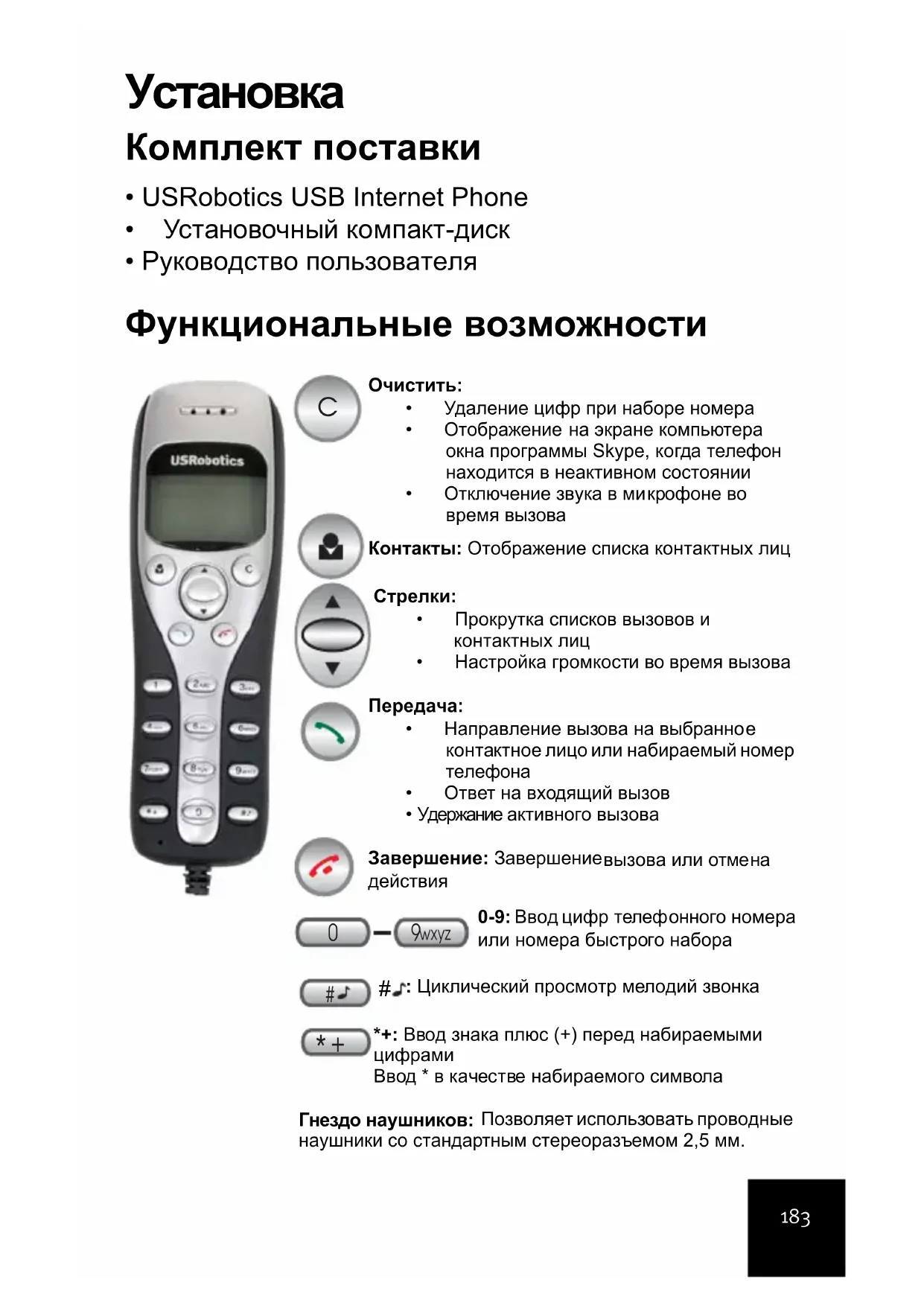- Настройка громкости во время вызова #184 Требования к системе Чтобы можно было использовать USB Internet Phone USRo- botics и службу Интернет-телефонии Skype™, компьютер и системная среда должны отвечать следующим минимальным требованиям.