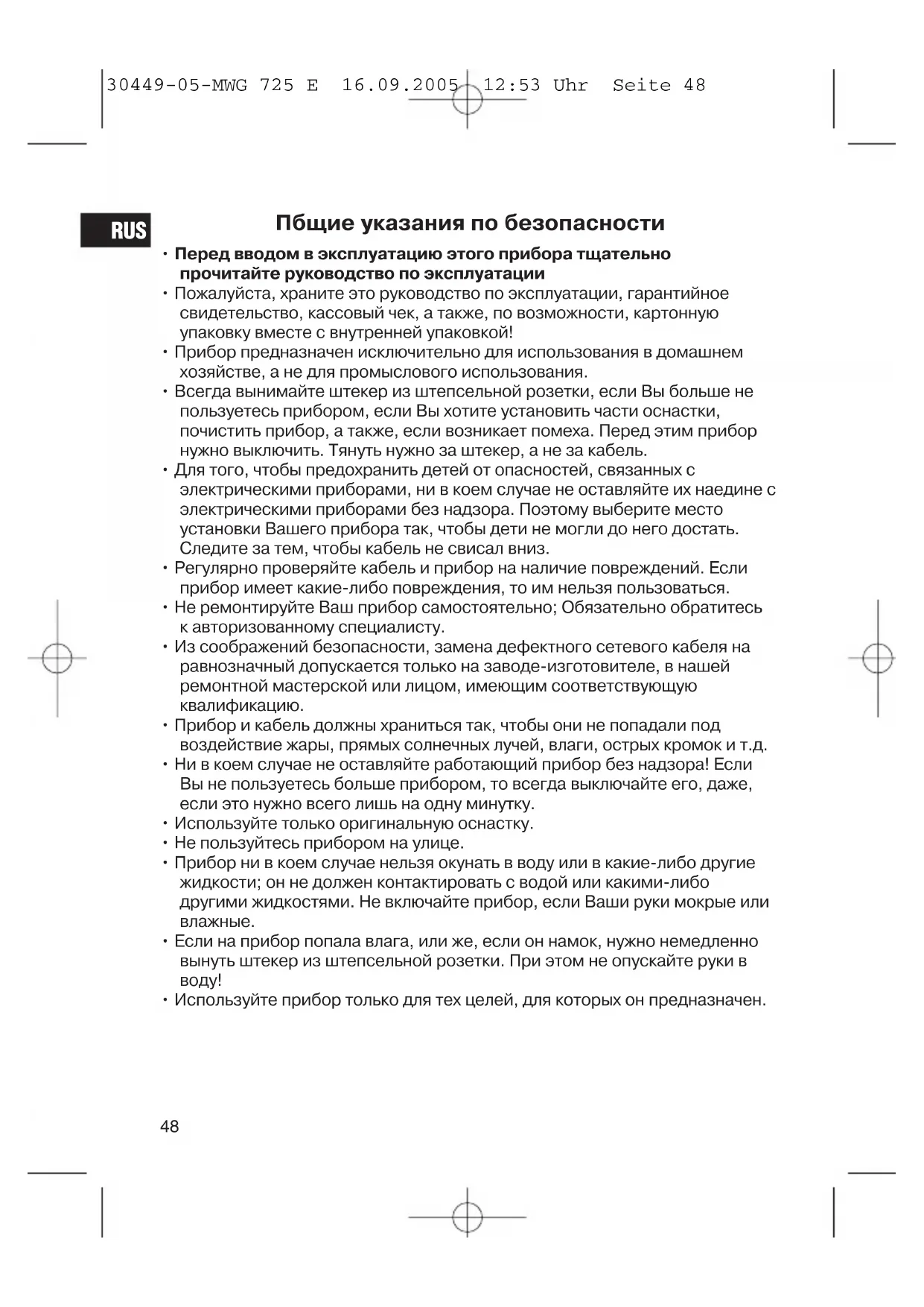 30449-05-MWG 725 E 16.09.2005 12:53 Uhr Seite 47Пбщие указания по безопасности