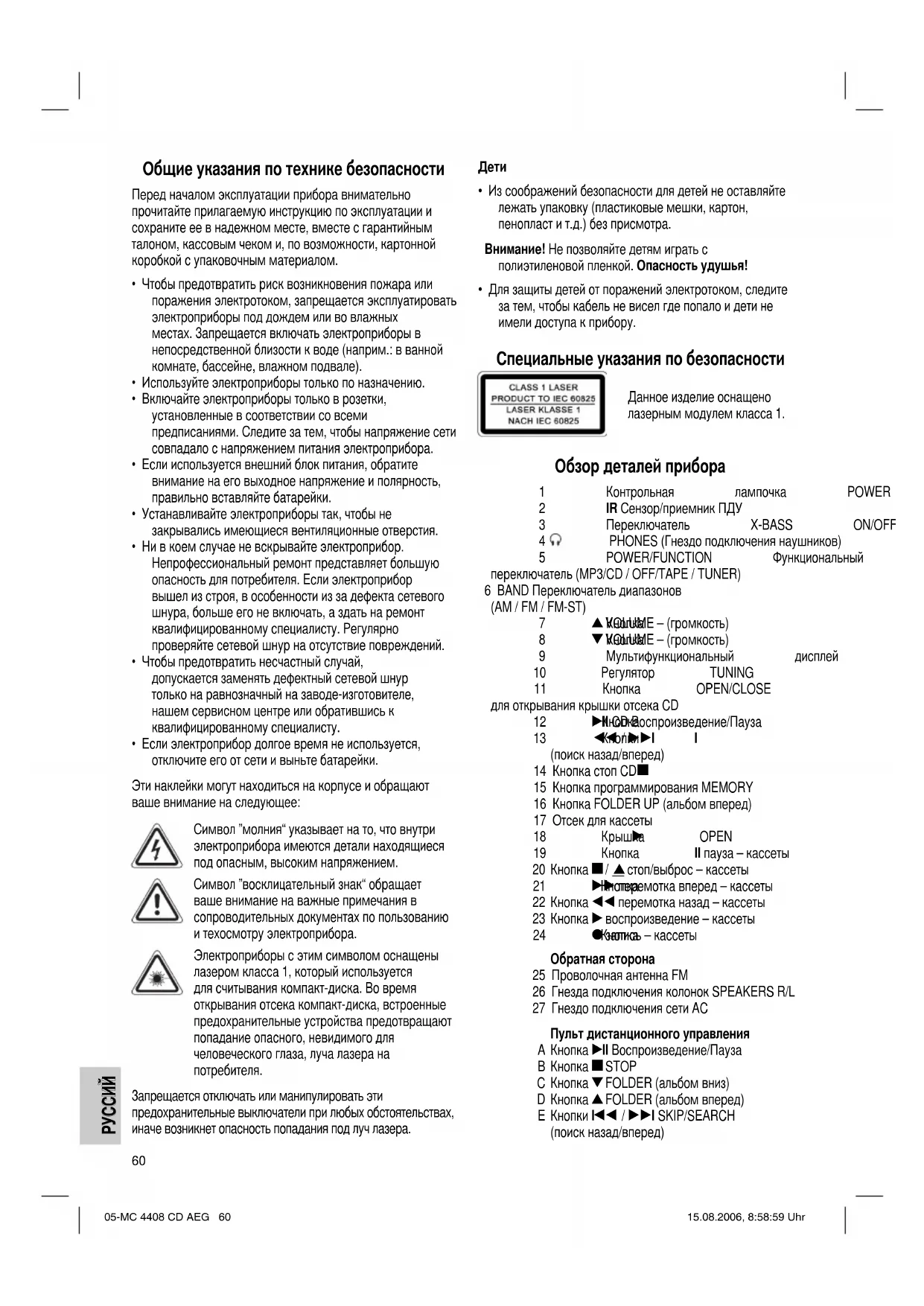 РУКОВОДСТВО ПОЛЬЗОВАТЕЛЯ MC 4408 CDMP3 AEG