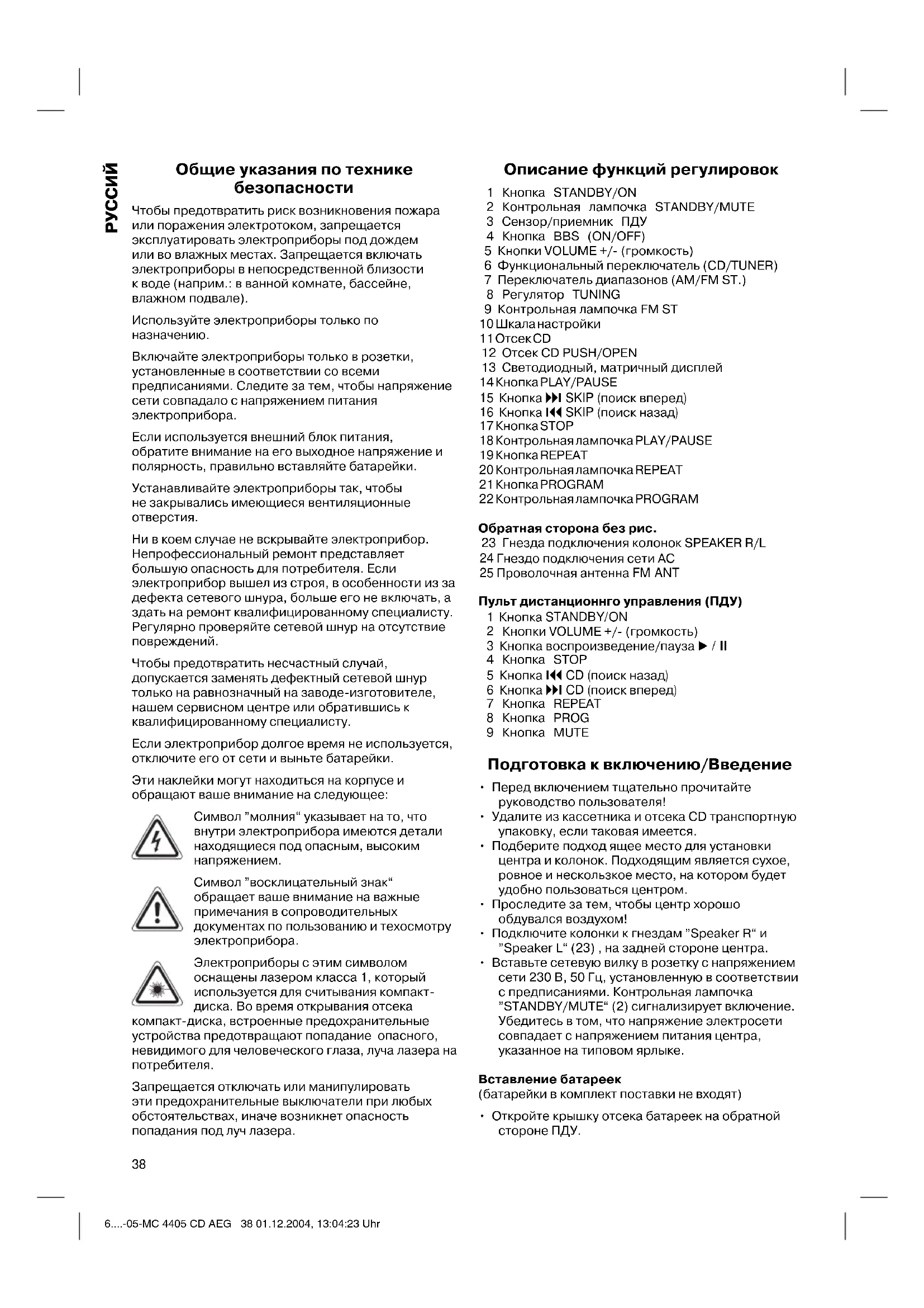 РУКОВОДСТВО ПОЛЬЗОВАТЕЛЯ MC 4405 CD AEG