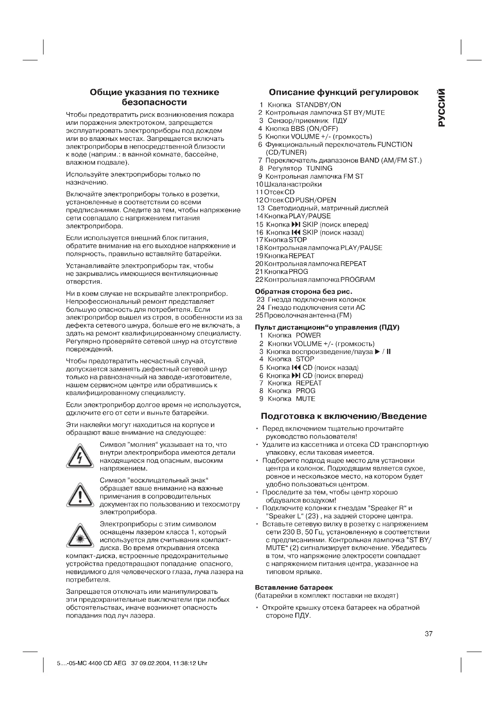 РУКОВОДСТВО ПОЛЬЗОВАТЕЛЯ MC 4400 CD AEG
