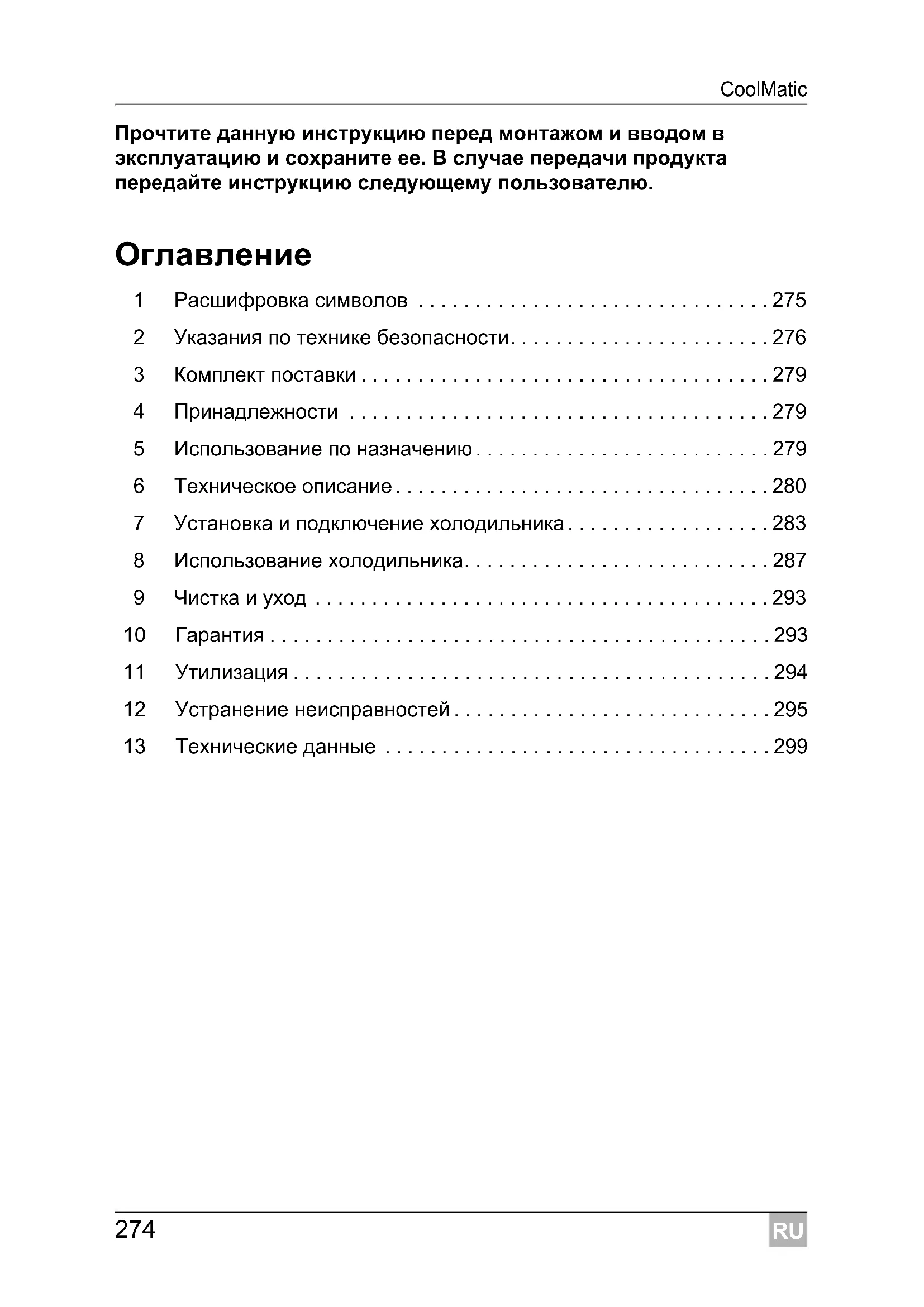 Дополнительная информация по управлению продуктом.RU Указания по технике безопасности CoolMatic