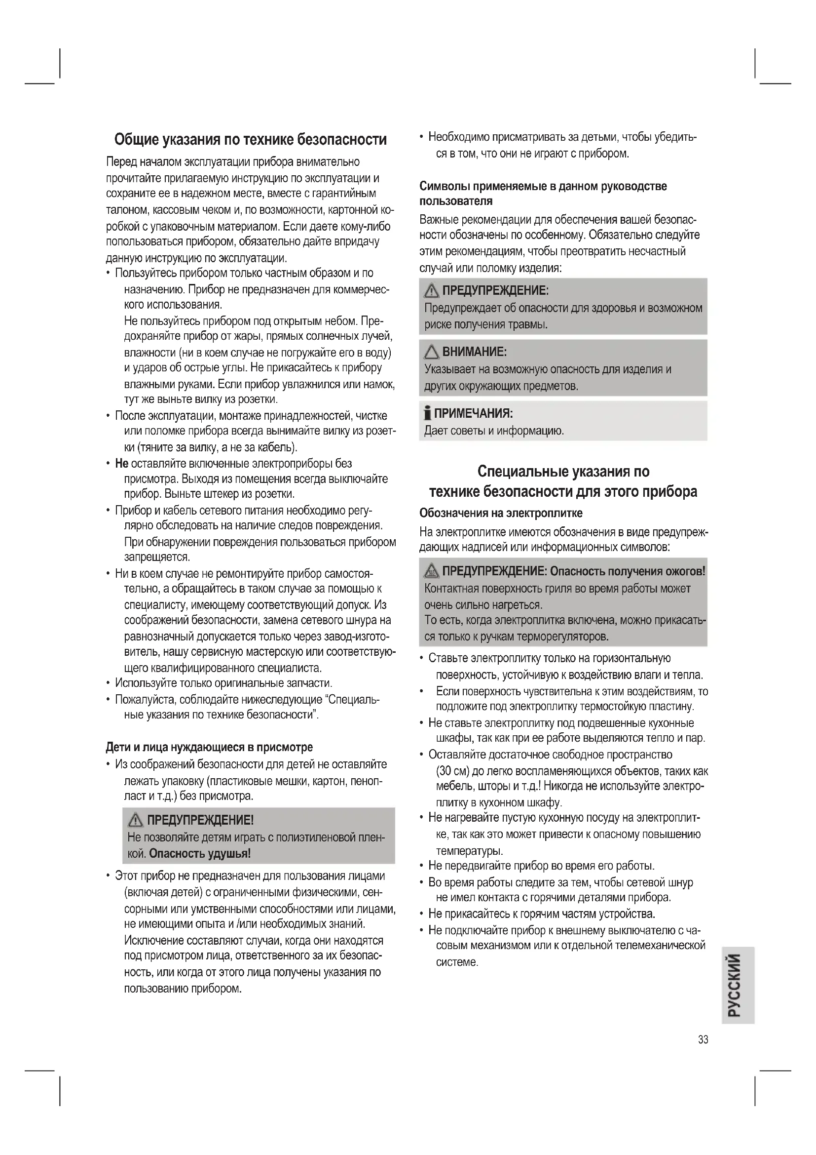 - Не пользуйтесь разветвительными штепсельными розетками, так как этот прибор имеет слишком высо- кую мощность.
