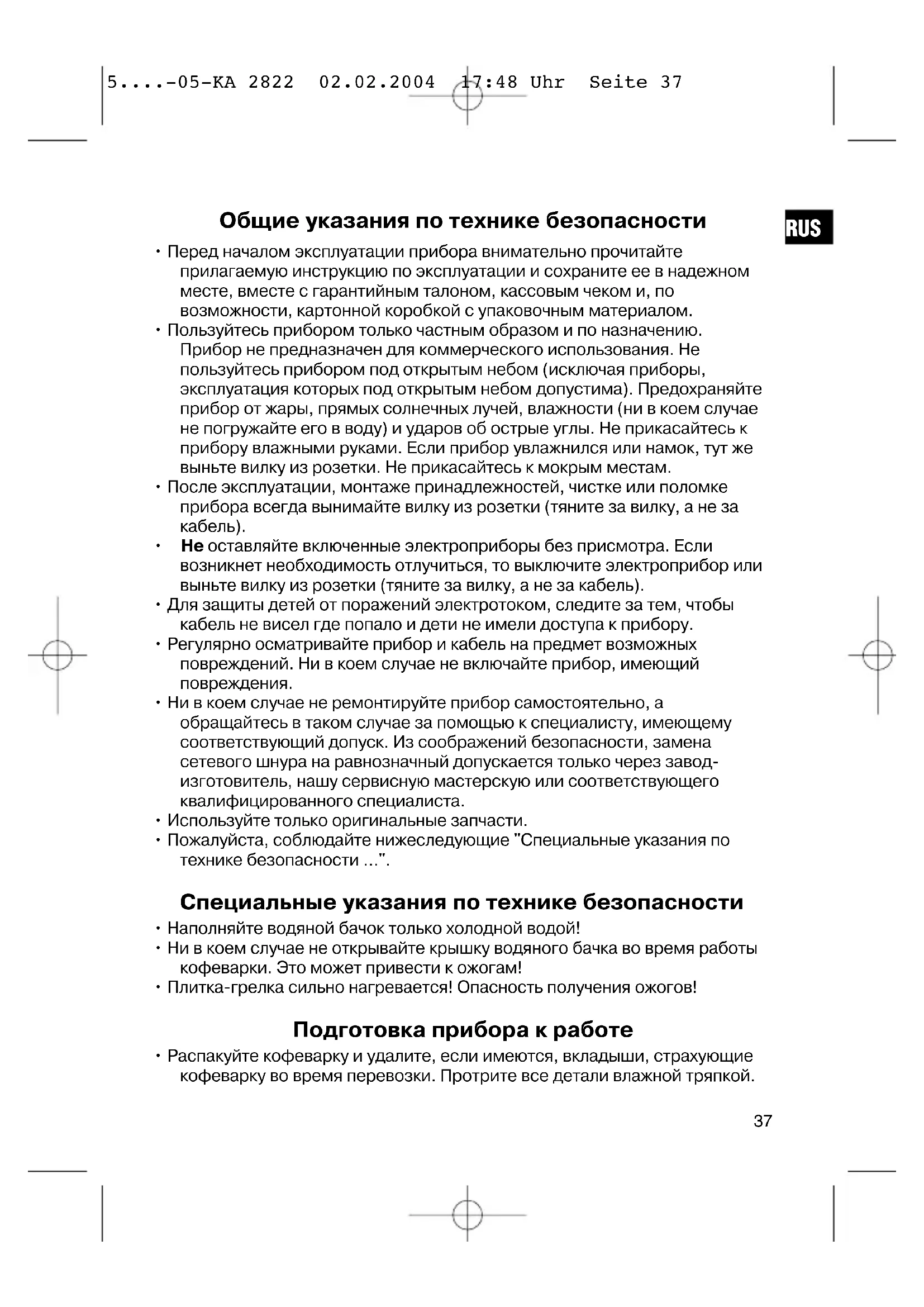 RUS 5....-05-KA 2822 02.02.2004 17:48 Uhr Seite 37Этим вы удалите пыль, которая могла туда попасть во время перевозки. Соберите насадку в обратном порядке.
