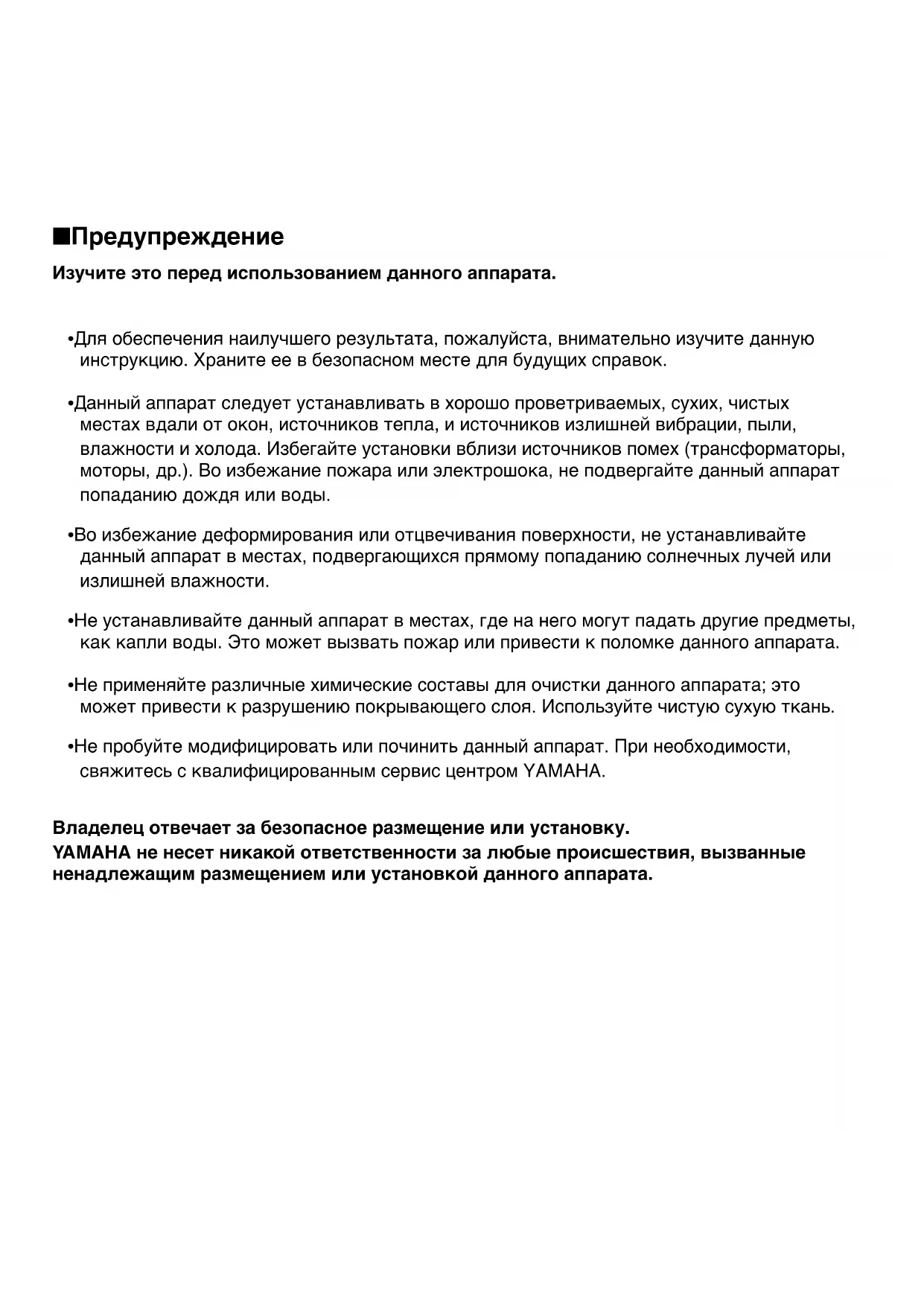 - Не устанавливайте данный аппарат в местах, где на него могут падать другие предметы, как капли воды. Это может вызвать пожар или привести к поломке данного аппарата.