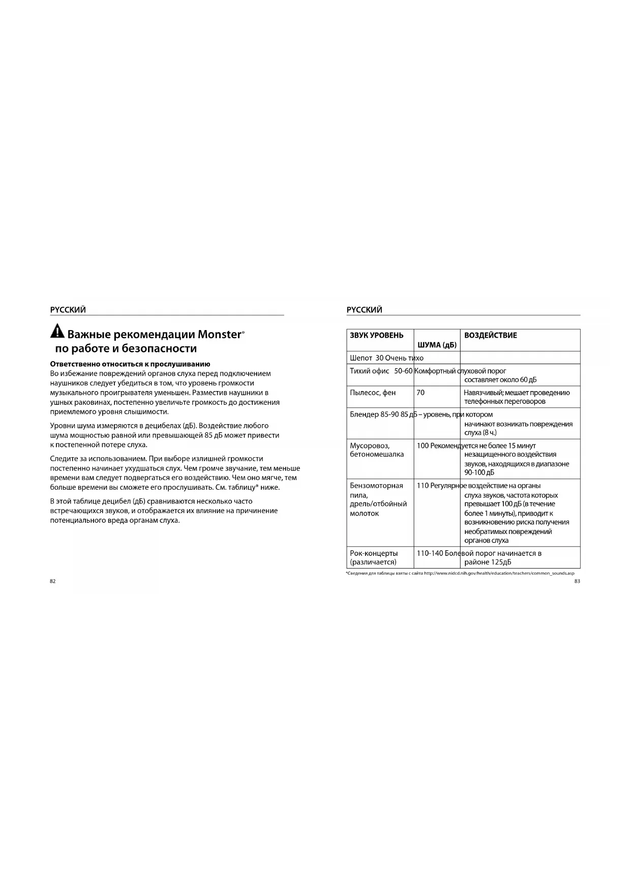 | Бileндар 85-90 85 d | 100 Реком endутята Heбоюе 15 МИну Небашищ�но Го Звухов, нахочихая 90-100 dБ | |