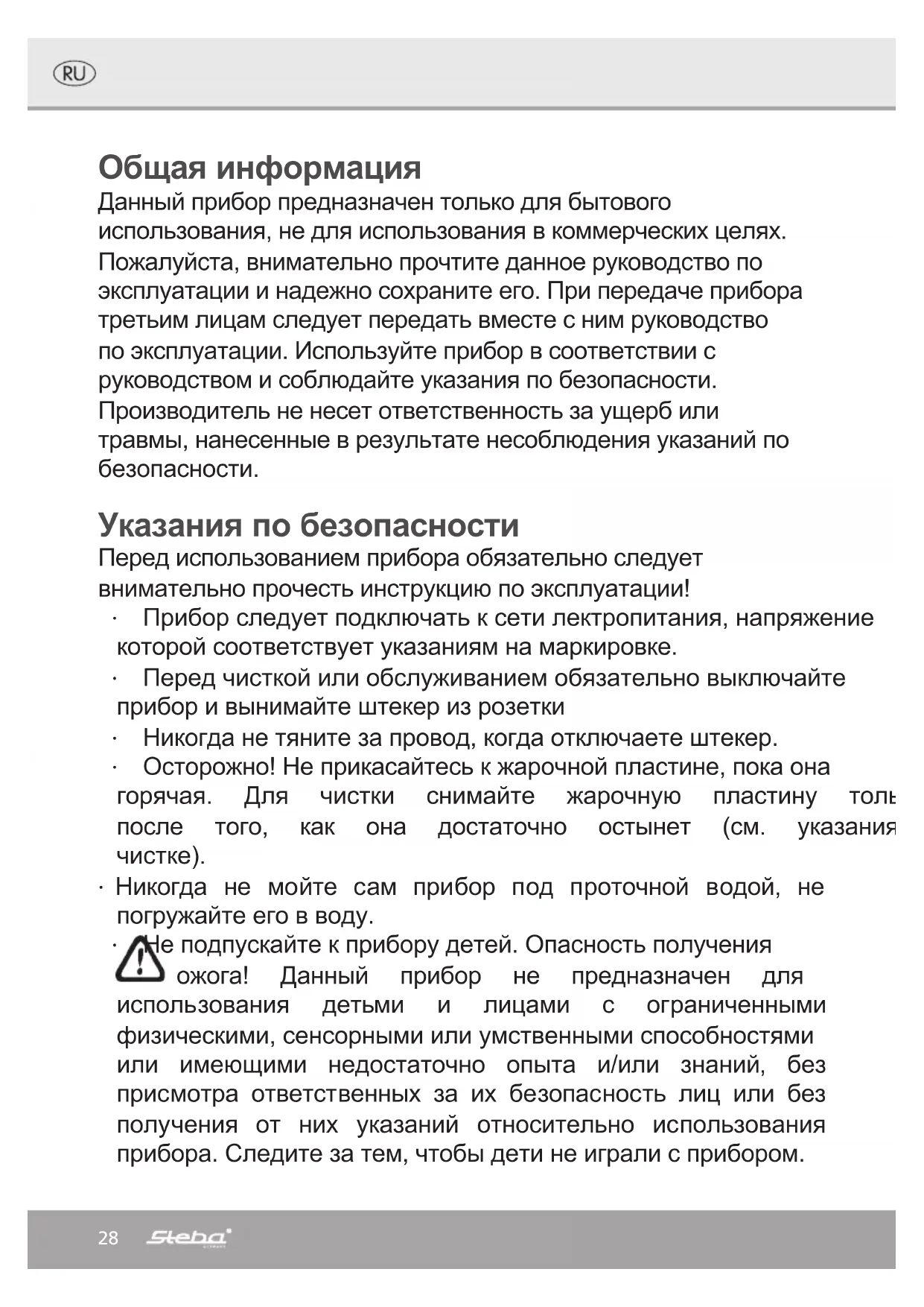 РУКОВОДСТВО ПОЛЬЗОВАТЕЛЯ RC60 TWIN Raclette STEBA