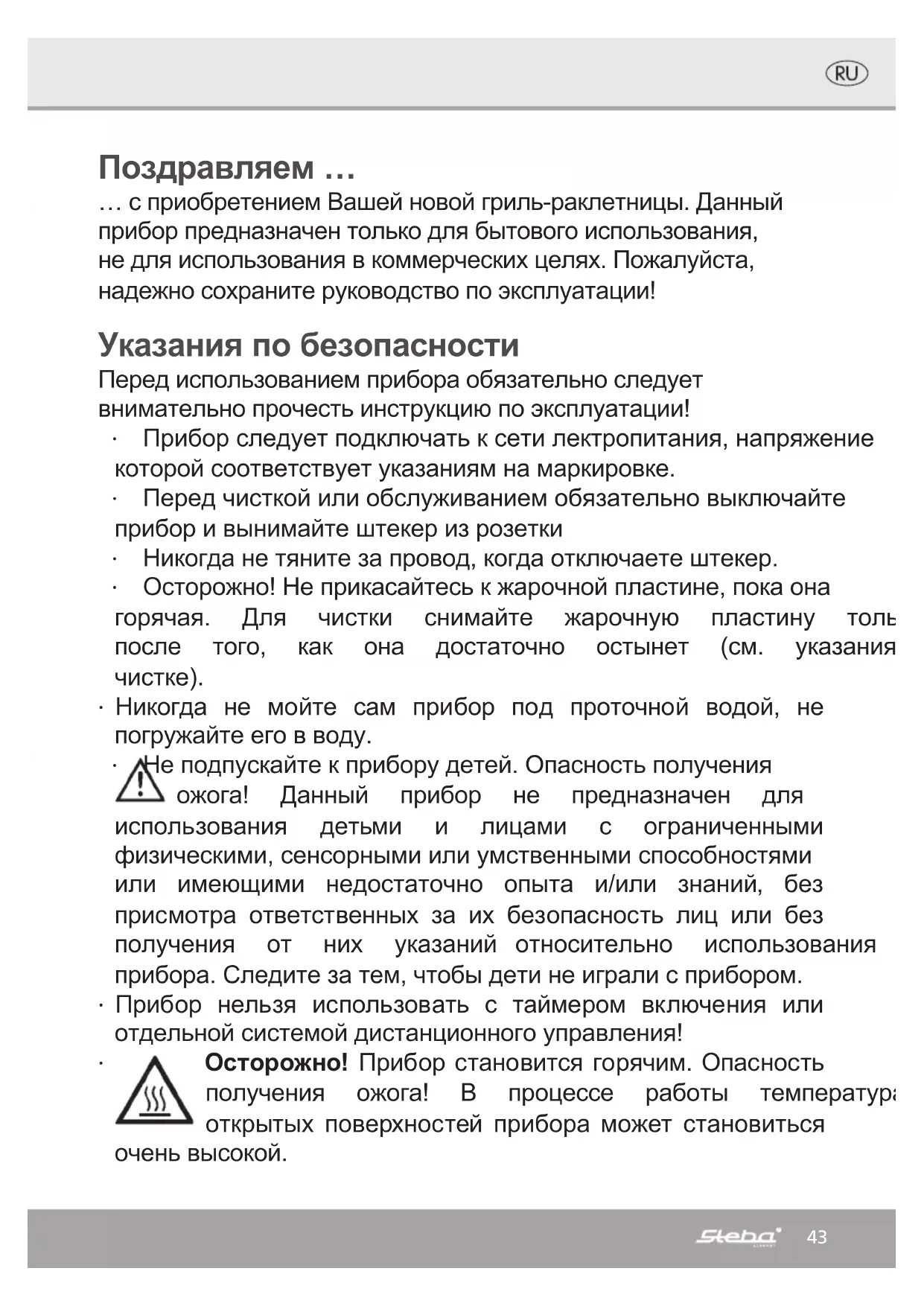 RC 88 - устройство для фондю, раклет и вок STEBA - Бесплатное руководство пользователя