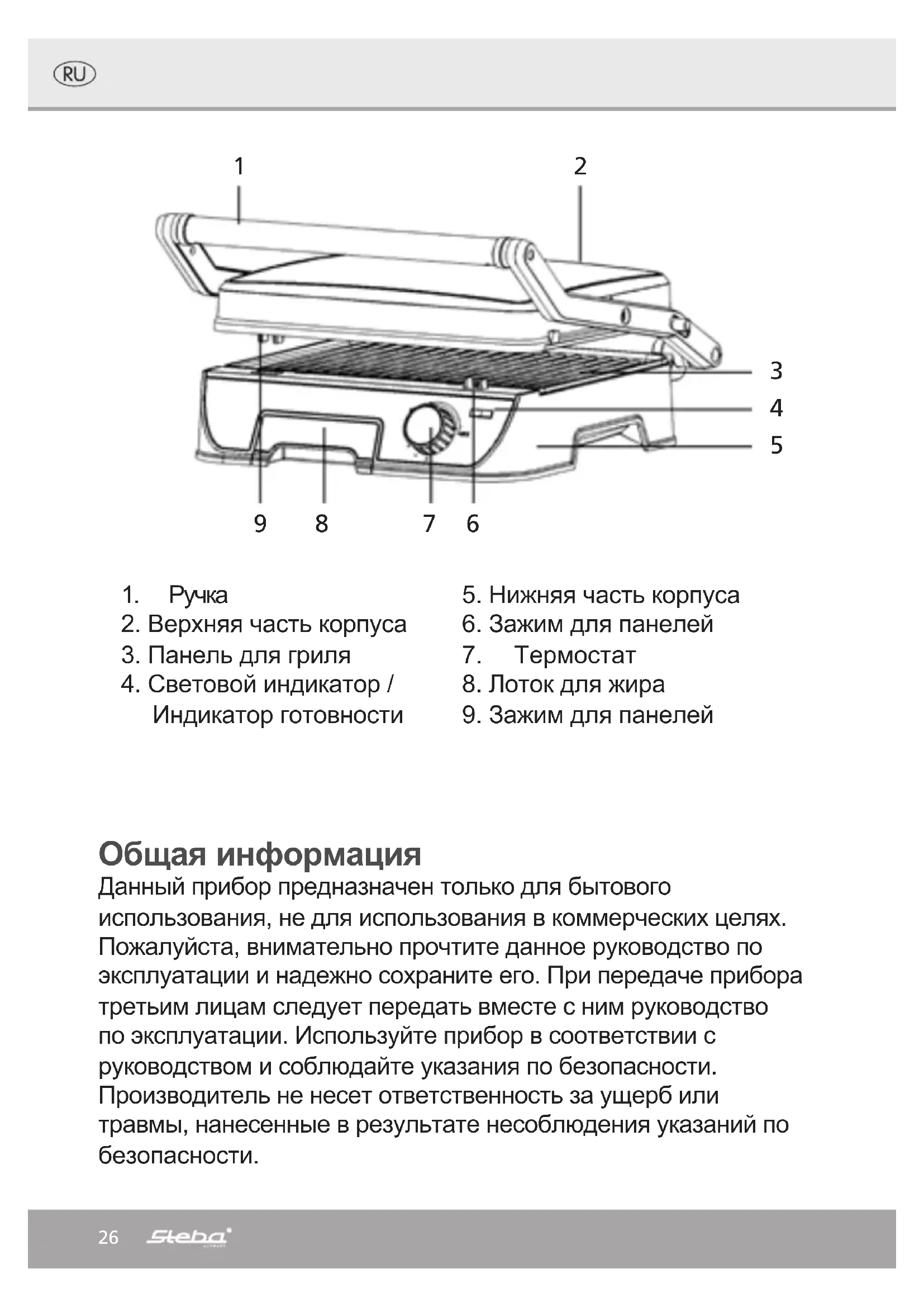 Скачайте инструкцию для вашего гриль плита в формате PDF бесплатно! Найдите своё руководство FG 56 - STEBA и возьмите своё электронное устройство обратно в руки. На этой странице опубликованы все документы, необходимые для использования вашего устройства. FG 56 бренда STEBA.