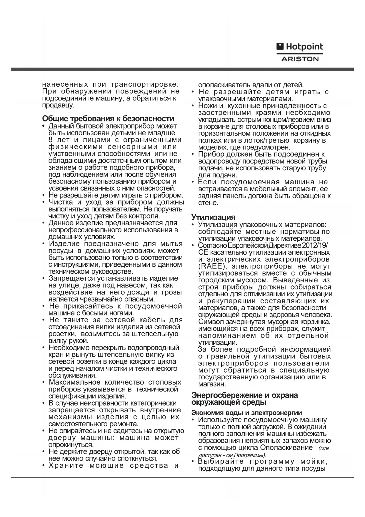 LFF 8M132 EU - посудомоечные машины HOTPOINT - Бесплатное руководство пользователя