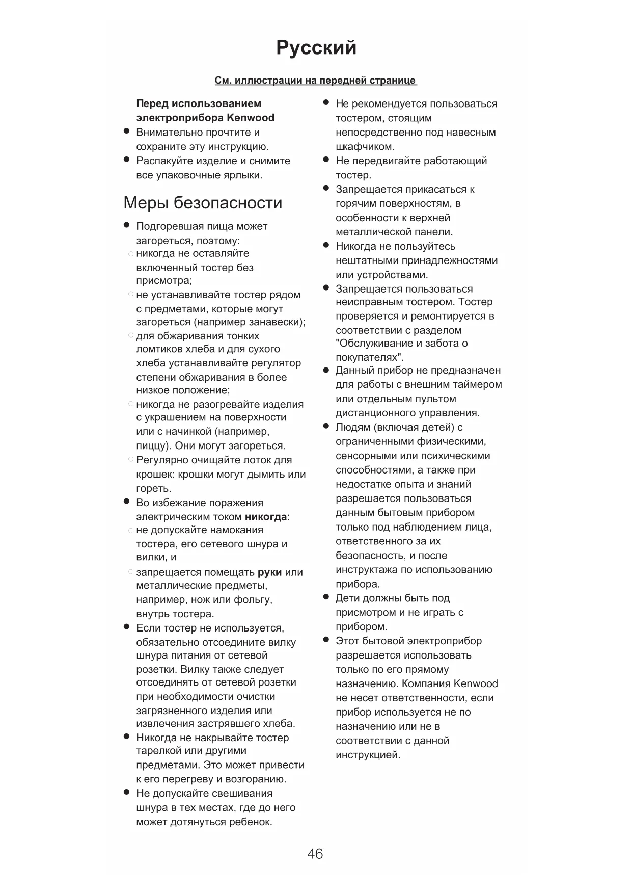 Этот бытовой электроприбор разрешается использовать только по его прямому назначению. Компания Kenwood не несет ответственности, если прибор используется не по назначению или не в соответствии с данной инструкцией.