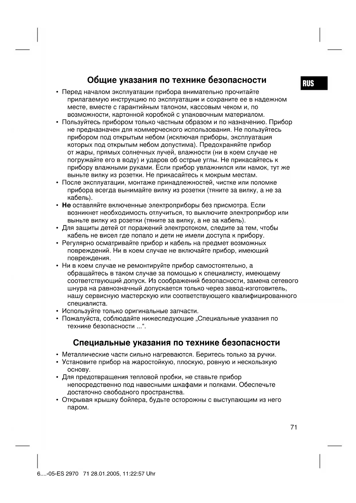 - Выньте вилку из розетки и дайте прибору остыть. 6....-05-ES 2970 75 28.01.2005, 11:23:01 UhrRUS