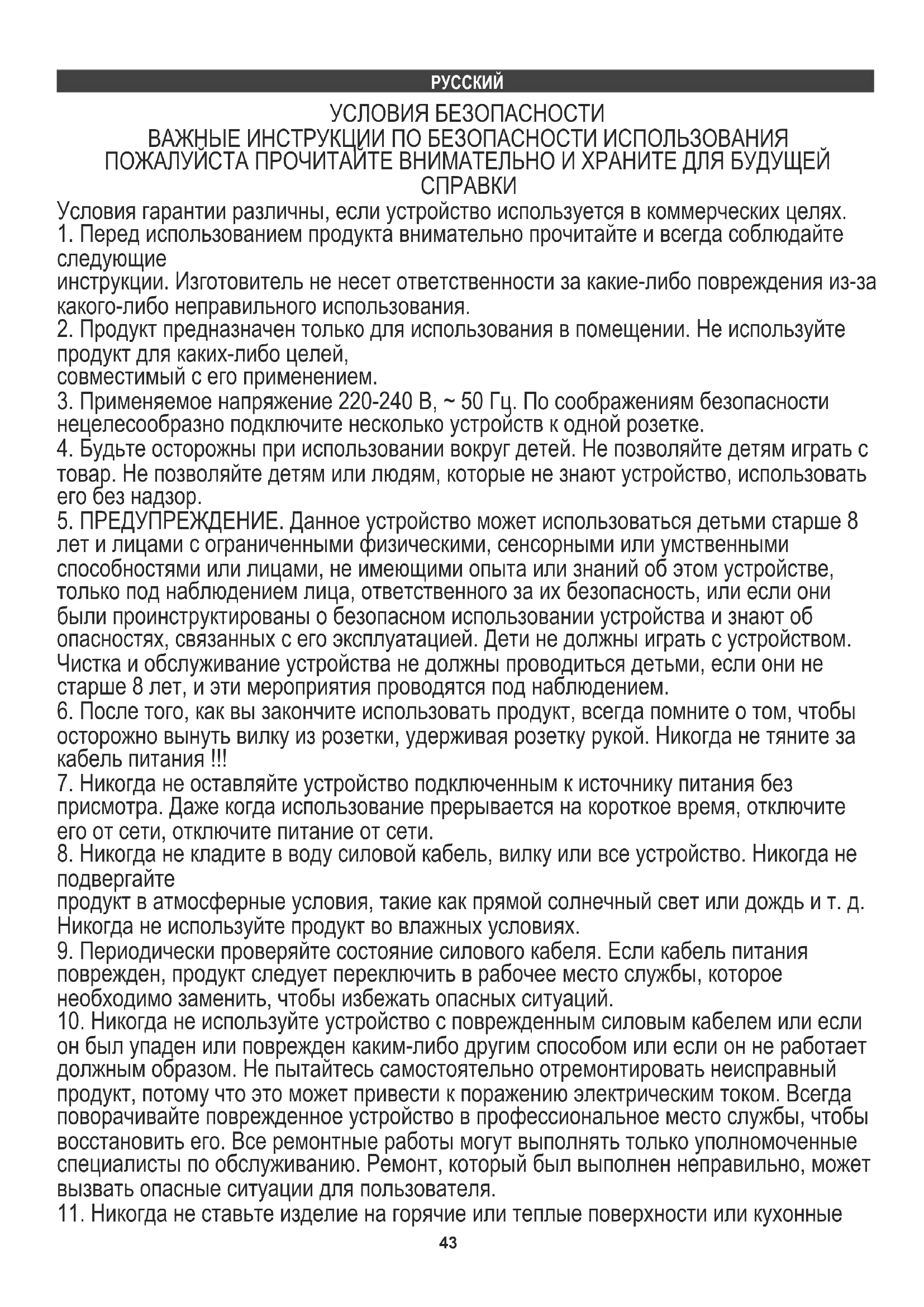 - AVERTISSEMENT : Cet apparéil peut être utilisé par les enfants de plus de 8 ans et par des personnes dont les capacities physiques, sensorielles ou mentales sont réduites ou par des personnes n'ayant pas d'expérience ou de connaissance de cet apparéil SI cela s'effectue sous surveillance d'une personne responsable de la sécurité ou qu'ils ont reçu des instructions concernant une utilisation sure de l' apparéil et qu'ils sont conscients des risques afférants à son utilisation. Les enfants de doivent pas journé avec l' apparéil. Le nettoyage et l'entretien de l' apparéil ne doit pas été effectuels par les enfants sauf s'ils ont plus de 8 ans et que ces activités sont surveillées.