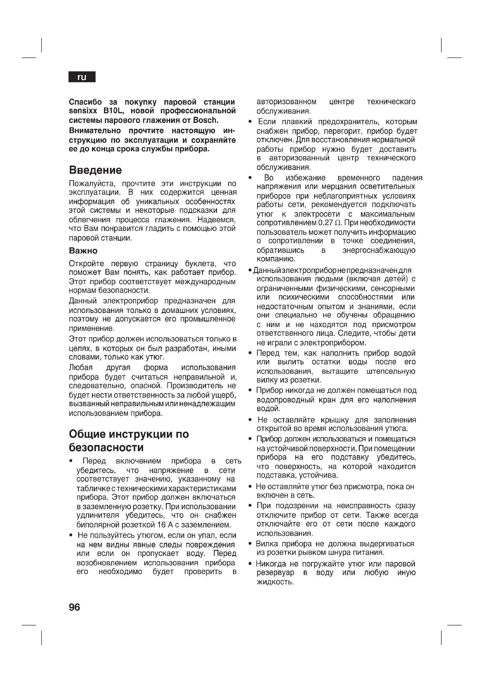 Пожалуйста, прочтите эти инструкции по эксплуатации. В них содержится ценная информация об уникальных особенностях этой системы и некоторые подсказки для облегчения процесса глажения. Надеемся, что Вам понравится гладить с помощью этой паровой станции.