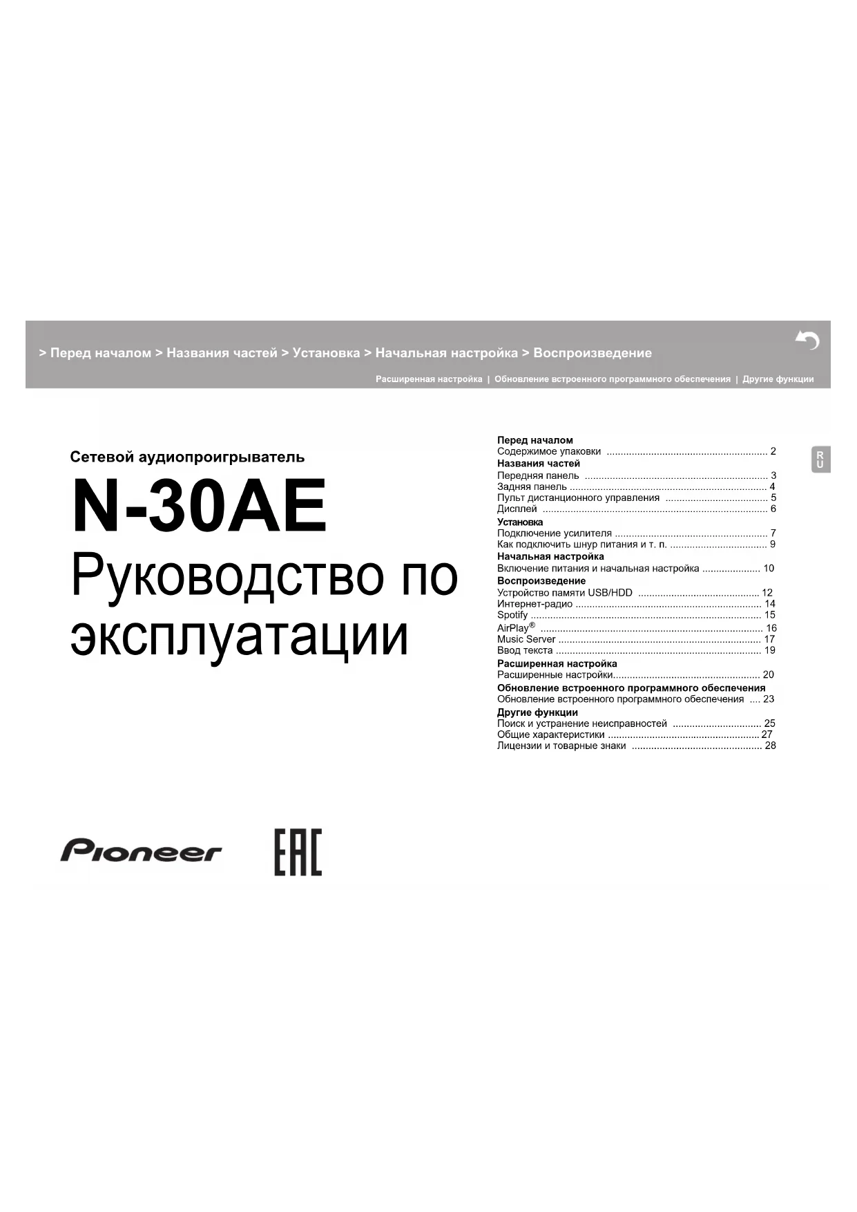 РУКОВОДСТВО ПОЛЬЗОВАТЕЛЯ N30AEB PIONEER