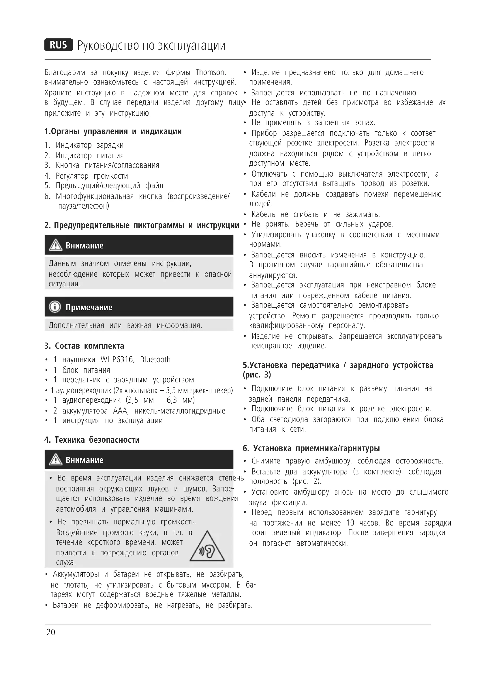 A Hama GmbH & Co. KG declara, por este meio, que este aparelho está em conformidade com os requisitos essenciais e outras disposições relevantes da Diretiva 2014/53/UE. Pode consultar a declaração de conformidade de acordo com a diretiva correspondente em www.hama.com.20 R Руководство по эксплуатации Благодарим за покупку изделия фирмы Thomson. внимательно ознакомьтесь с настоящей инструкцией. Храните инструкцию в надежном месте для справок в будущем. В случае передачи изделия другому лицу приложите и эту инструкцию. 1.Органы управления и индикации