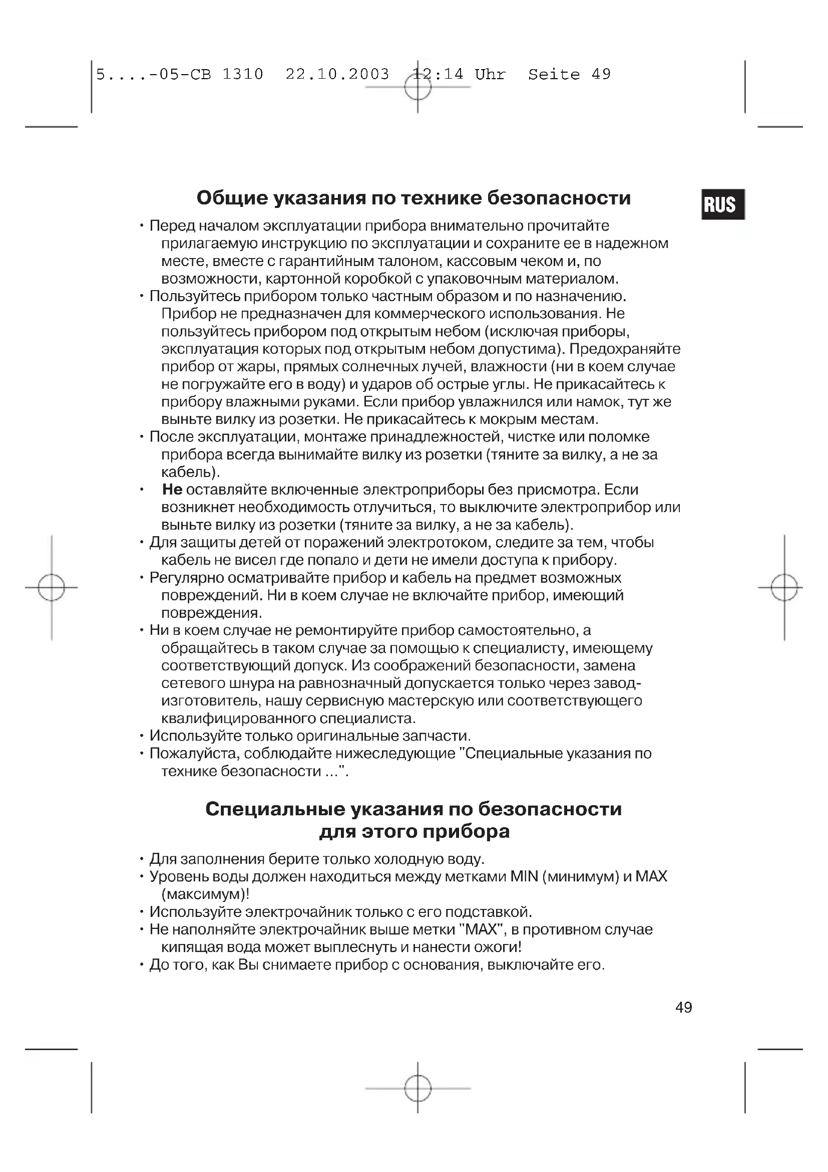 RUS 5....-05-CB 1310 22.10.2003 12:14 Uhr Seite 49• Всегда следите за тем, чтобы крышка была плотно закрыта.