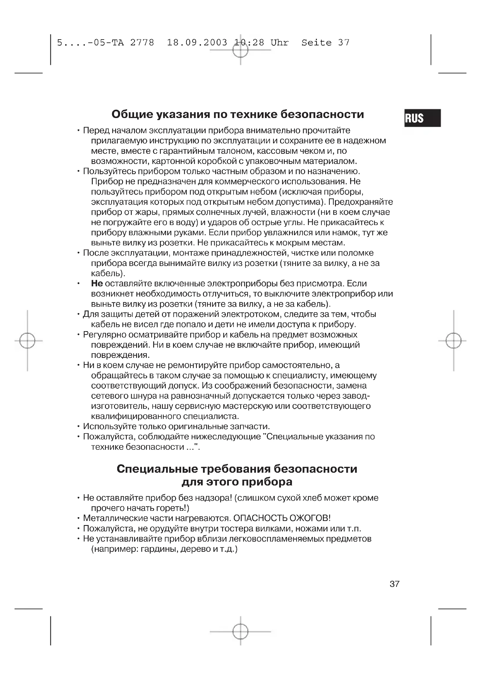 5....-05-TA 2778 18.09.2003 10:28 Uhr Seite 36Общие указания по технике безопасности