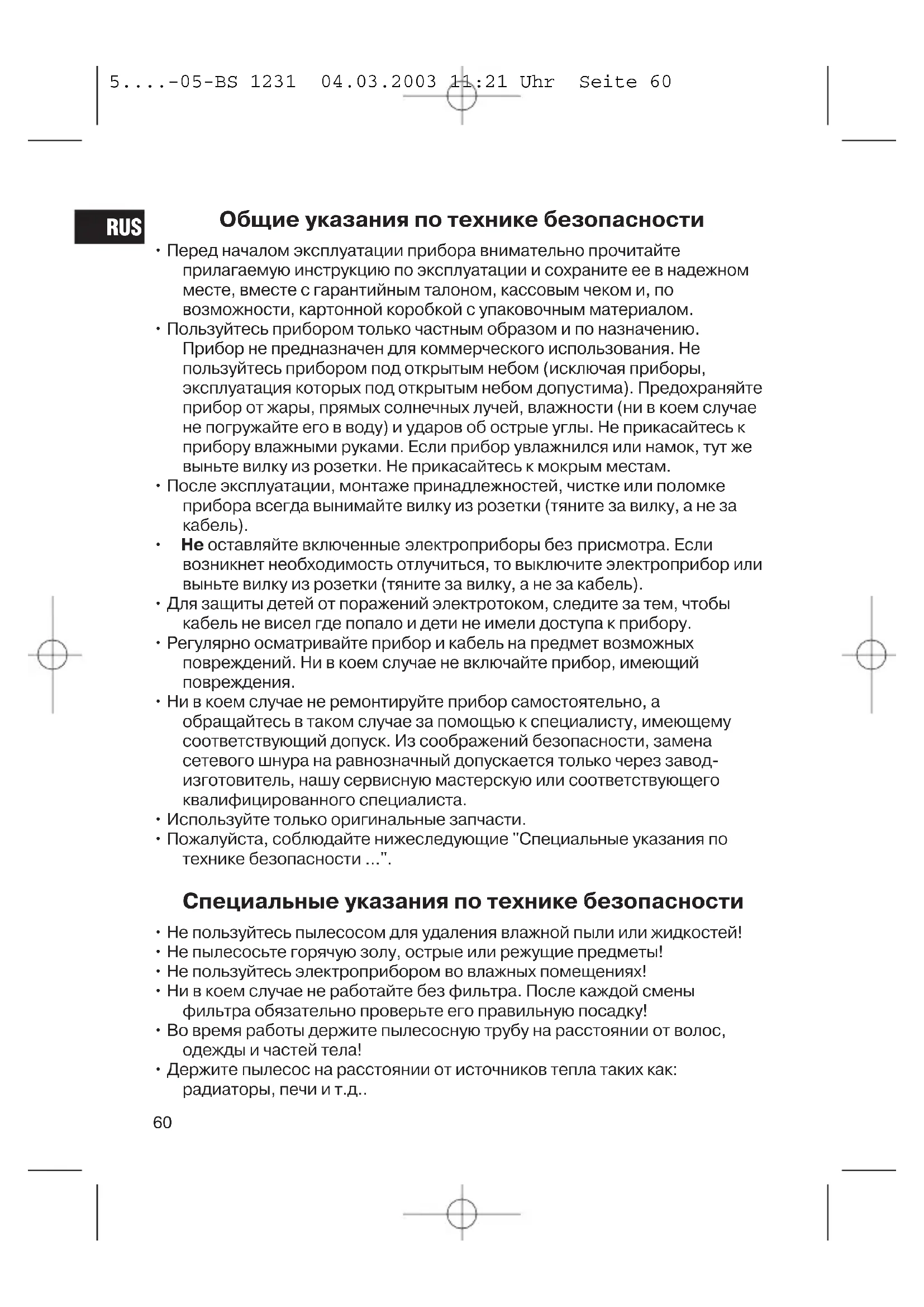 5....-05-BS 1231 04.03.2003 11:21 Uhr Seite 59Общие указания по технике безопасности