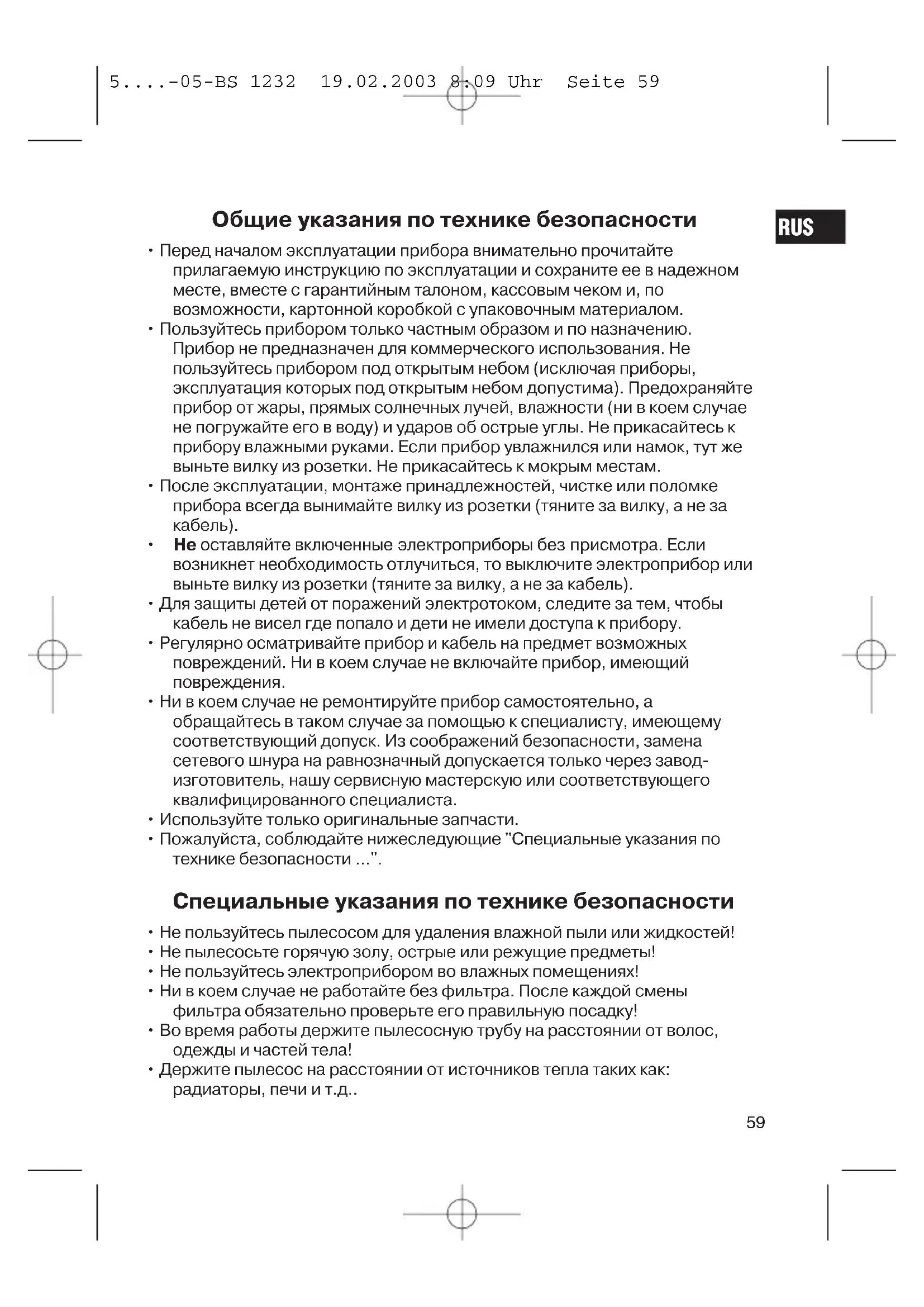5....-05-BS 1232 19.02.2003 8:09 Uhr Seite 58Общие указания по технике безопасности