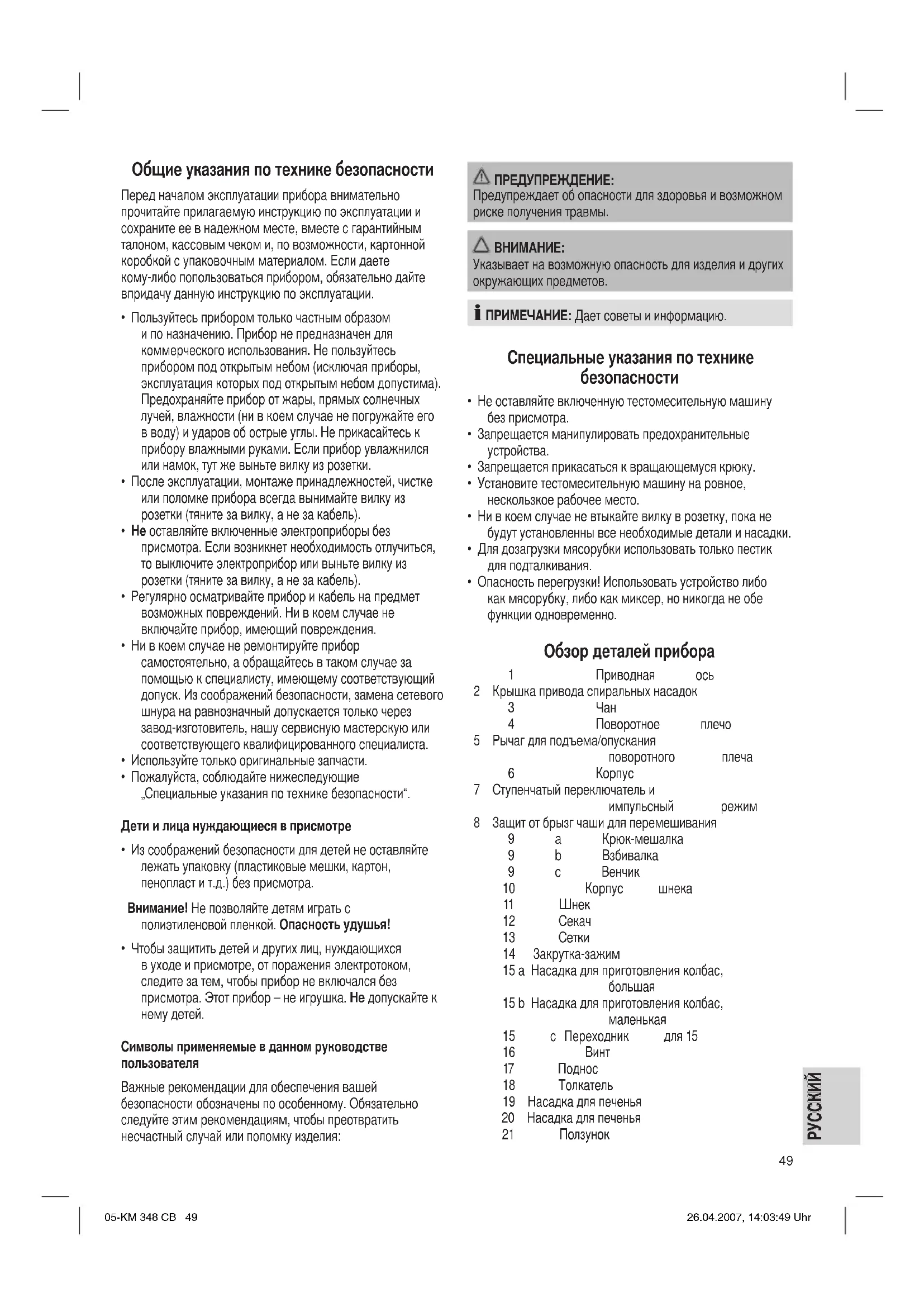 15 c Переходник для 15 16 Винт 17 Поднос 18 Толкатель 19 Насадка для печенья 20 Насадка для печенья 21 Ползунок 05-KM 348 CB 49 26.04.2007, 14:03:49 Uhr50