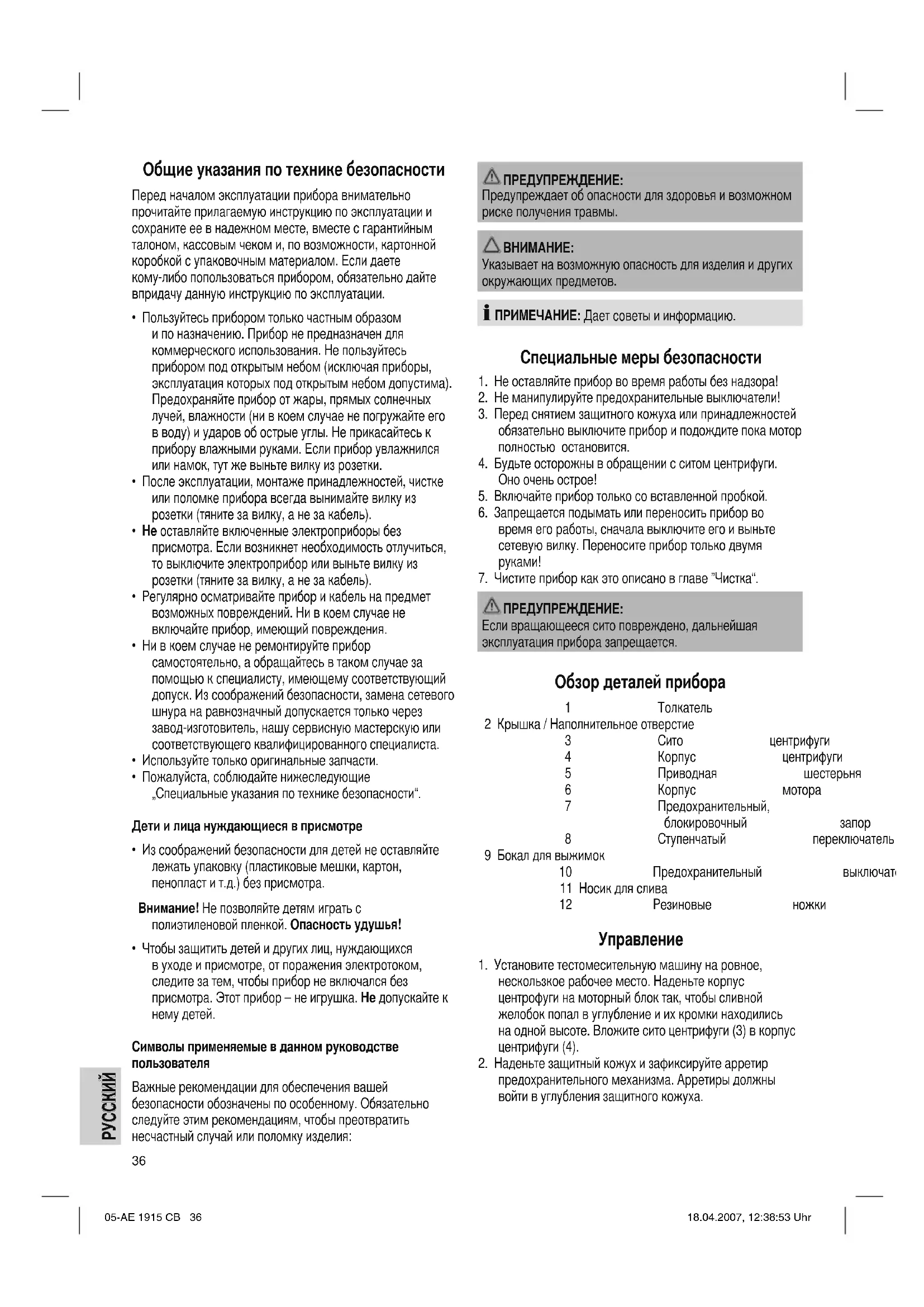 - Пожалуйста, соблюдайте нижеследующие „Специальные указания по технике безопасности“. Дети и лица нуждающиеся в присмотре