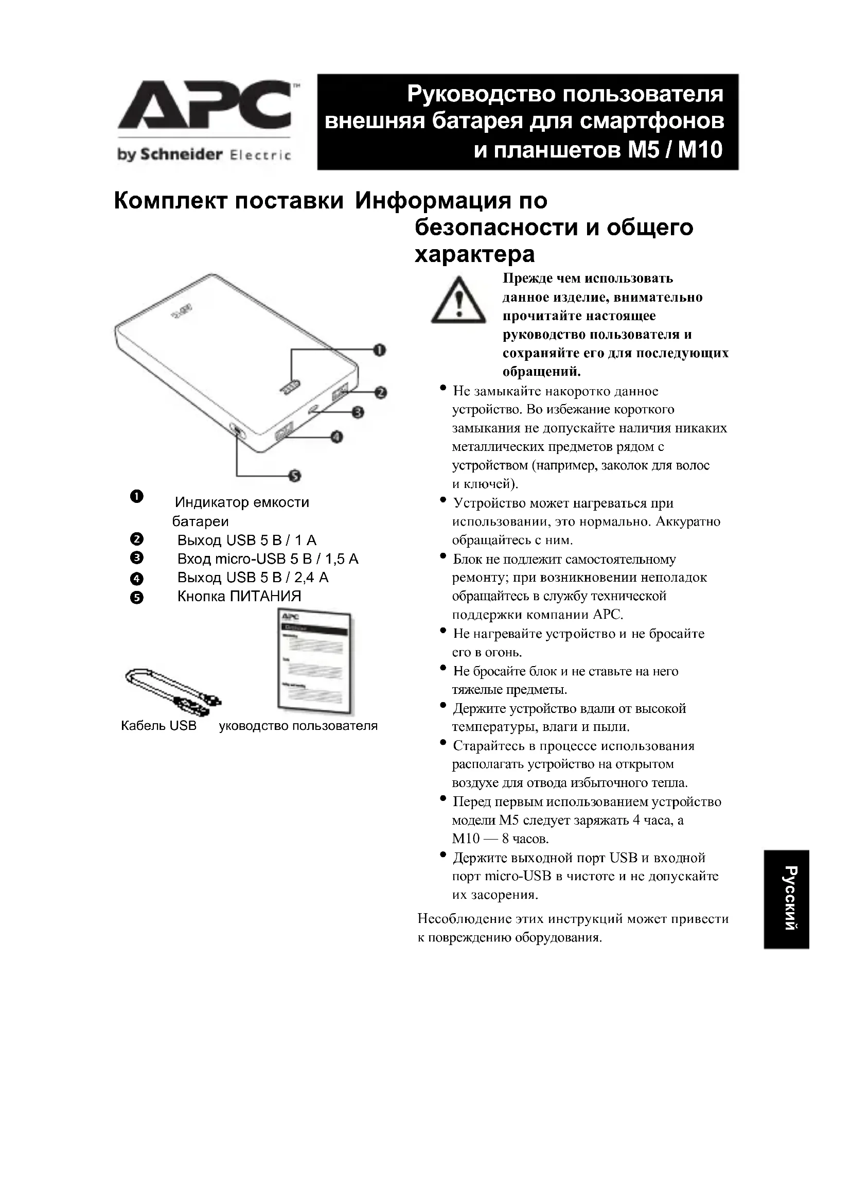 РУКОВОДСТВО ПОЛЬЗОВАТЕЛЯ Power Pack M5 APC