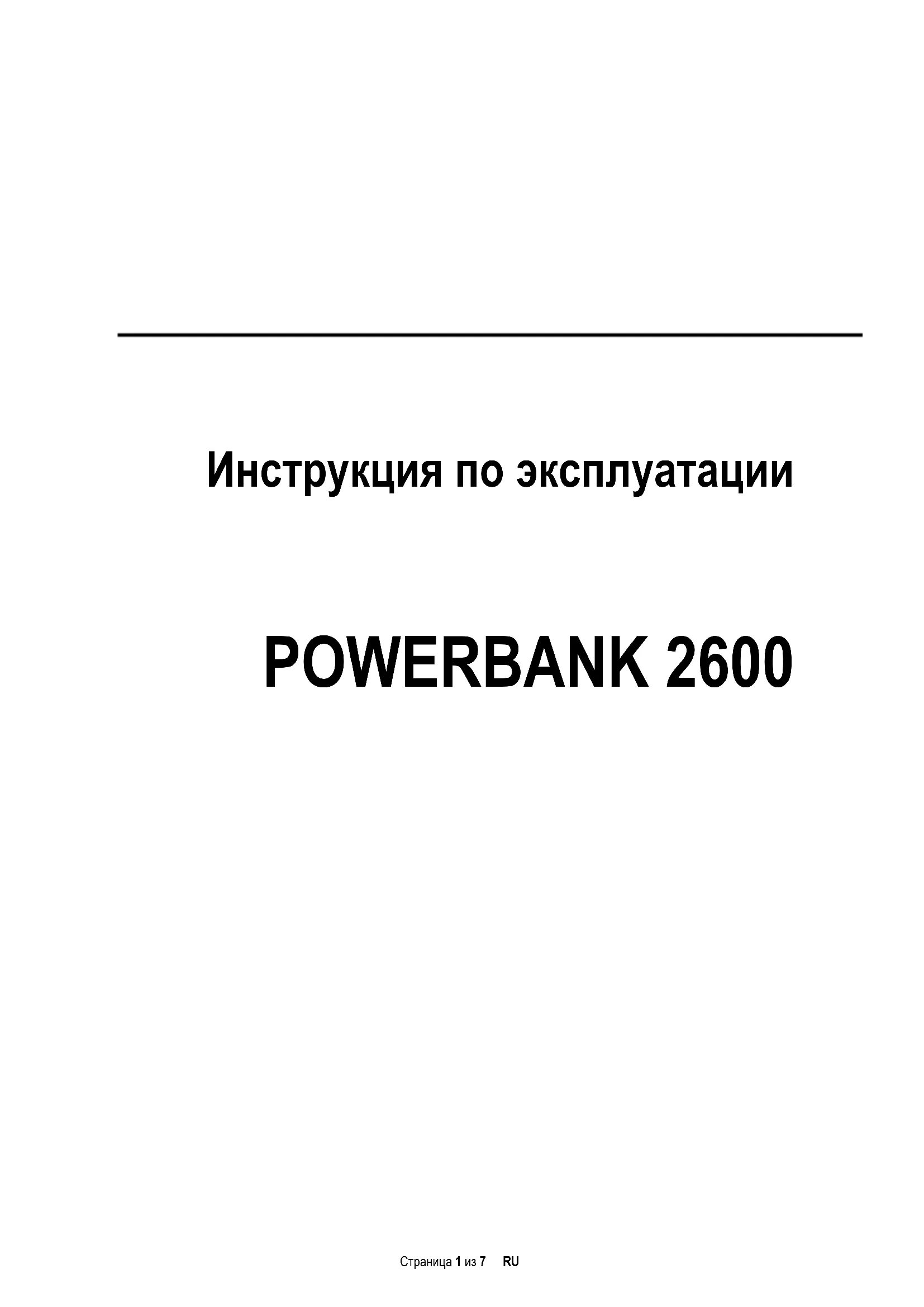 POWERBANK 2600Страница 2 из 7 RU Комплект поставки Intenso Powerbank 2600 (Портативное зарядное устройство) Micro USB - Зарядный кабель Инструкция по эксплуатации Технические характеристики