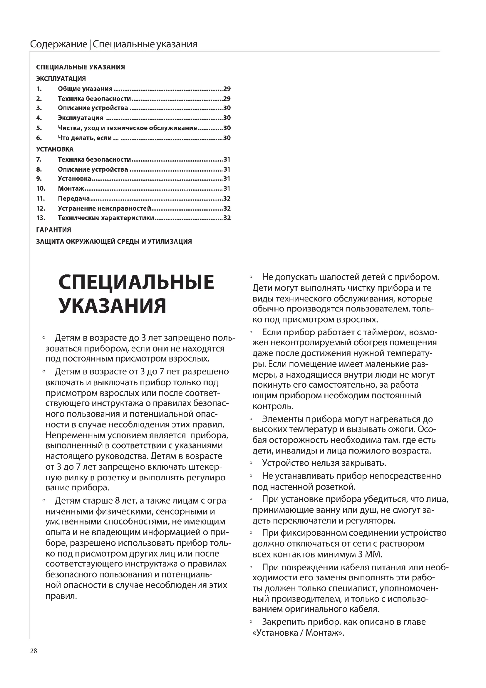- При установке прибора убедиться, что лица, принимающие ванну или душ, не смогут за- деть переключатели и регуляторы.