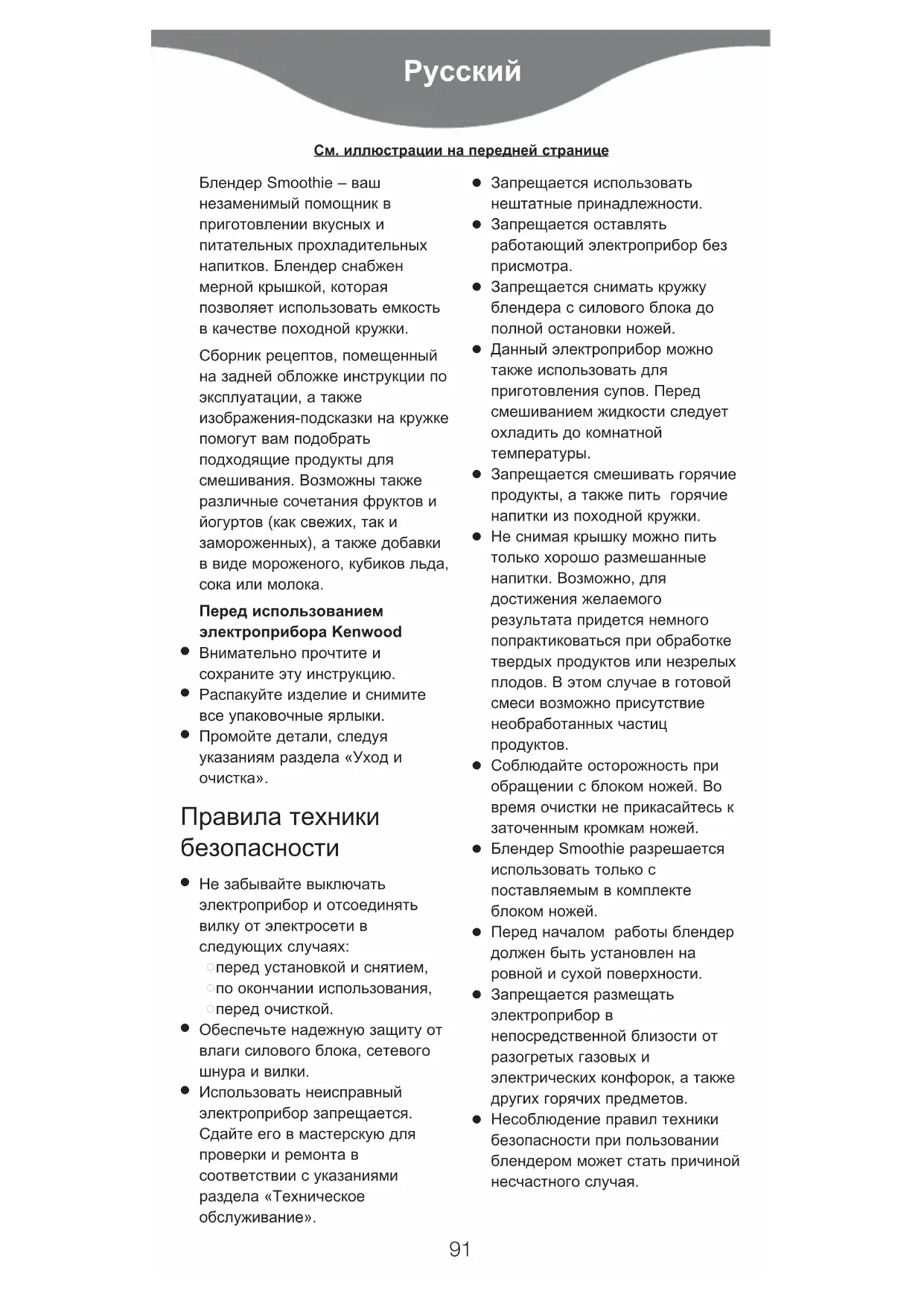 Этот бытовой электроприбор разрешается использовать только по его прямому назначению. Компания Kenwood не несет ответственности, если прибор используется не по назначению или не в соответствии с данной инструкцией. Перед подключением