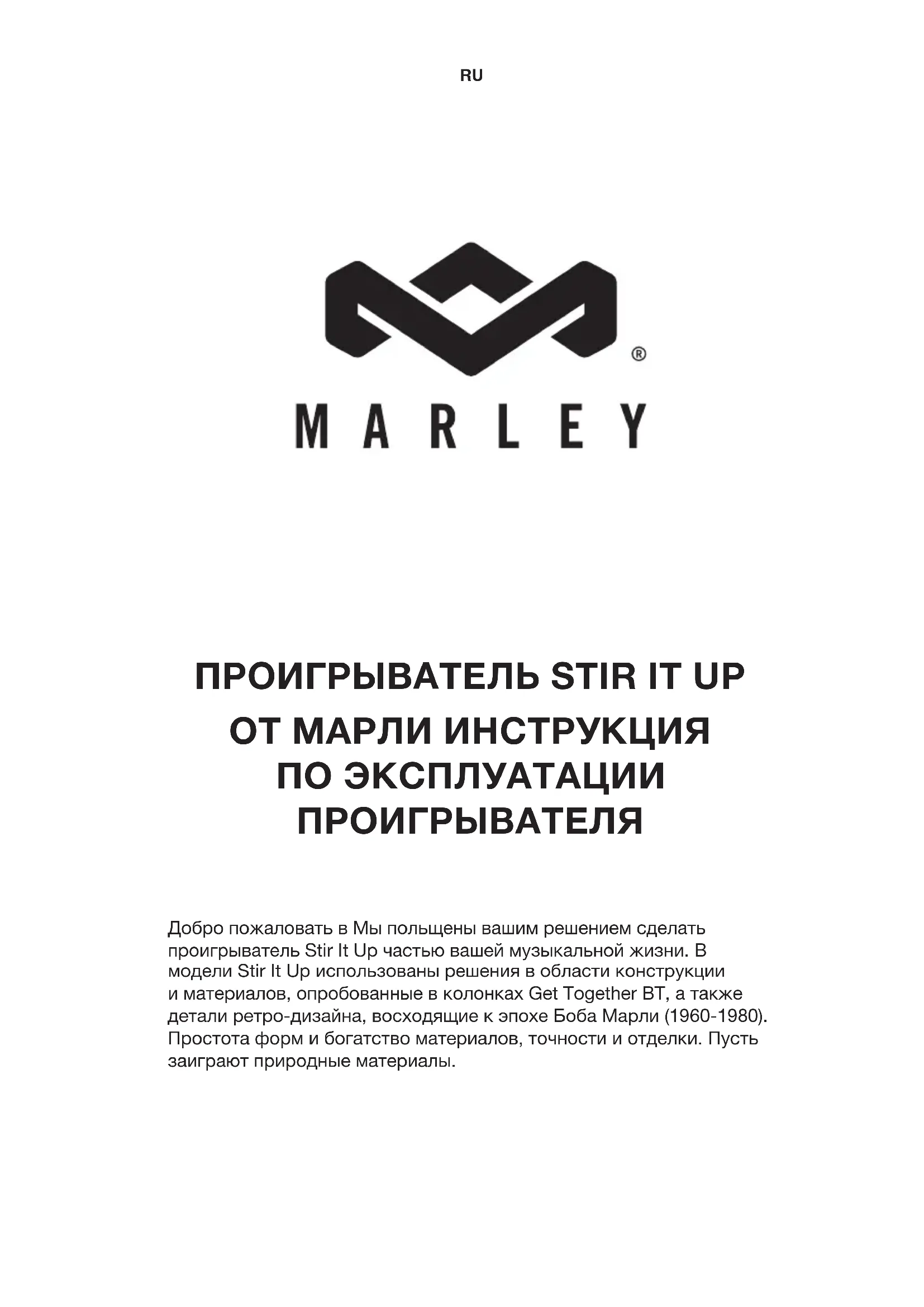 РУКОВОДСТВО ПОЛЬЗОВАТЕЛЯ Stir It Up EMFH013 HOUSE OF MARLEY