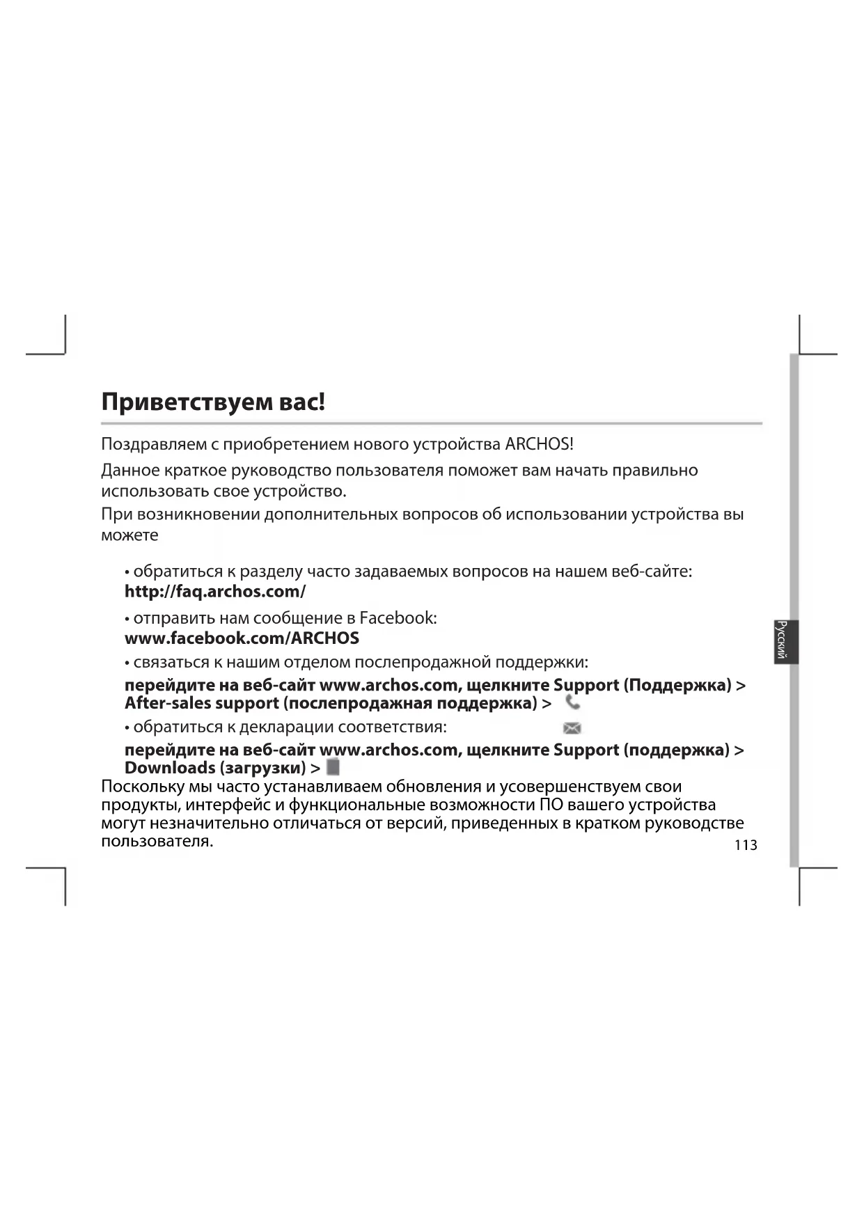 Поздравляем с приобретением нового устройства ARCHOS! Данное краткое руководство пользователя поможет вам начать правильно использовать свое устройство. При возникновении дополнительных вопросов об использовании устройства вы