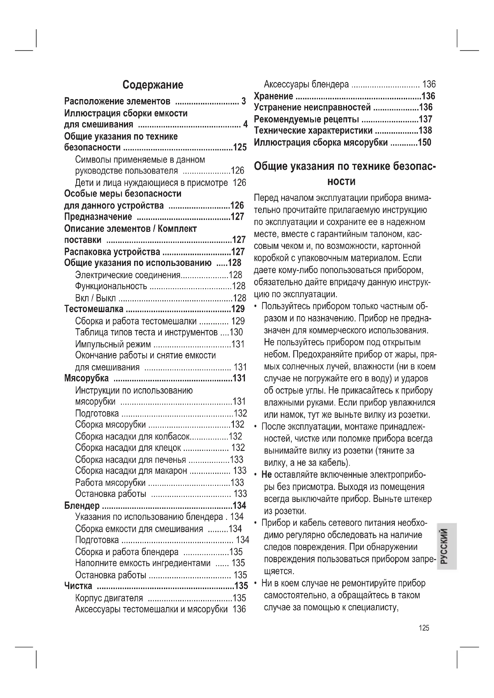 - Общие указания по технике безопасности p. 125