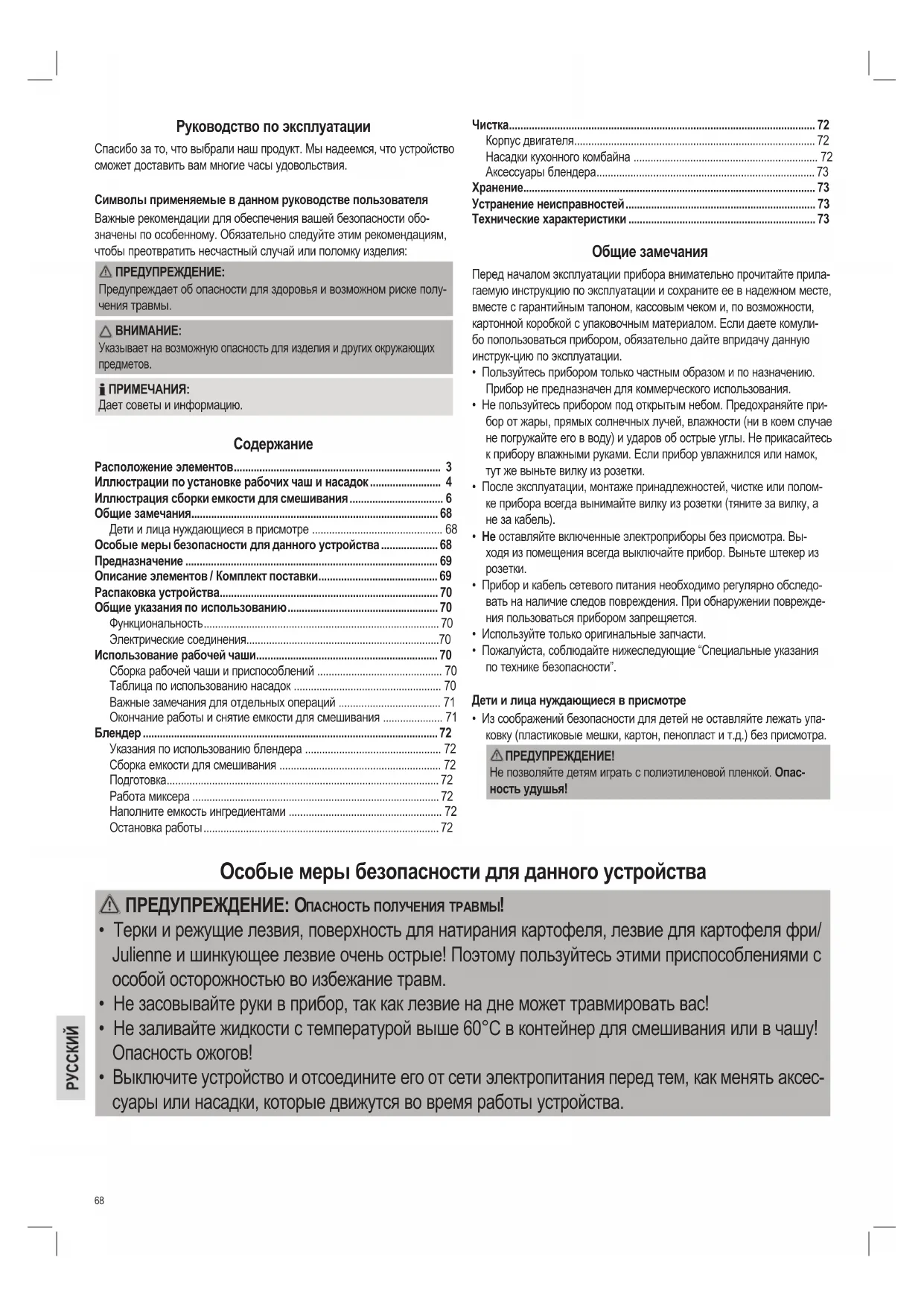 - Во время мытья и опустошения кувшина миксера сохраняется опасность травмирования! Обращайтесь с ножом блендера с чрез- вы-чайной осторожностью!