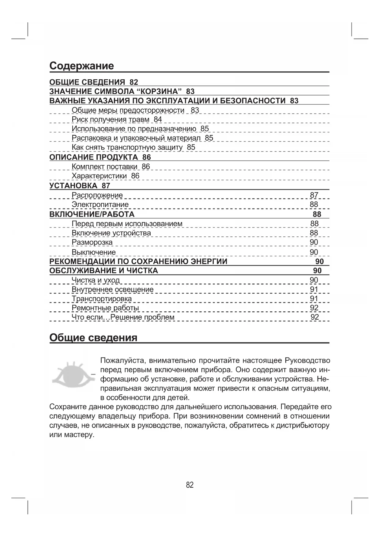 Общие меры предосторожности 83
