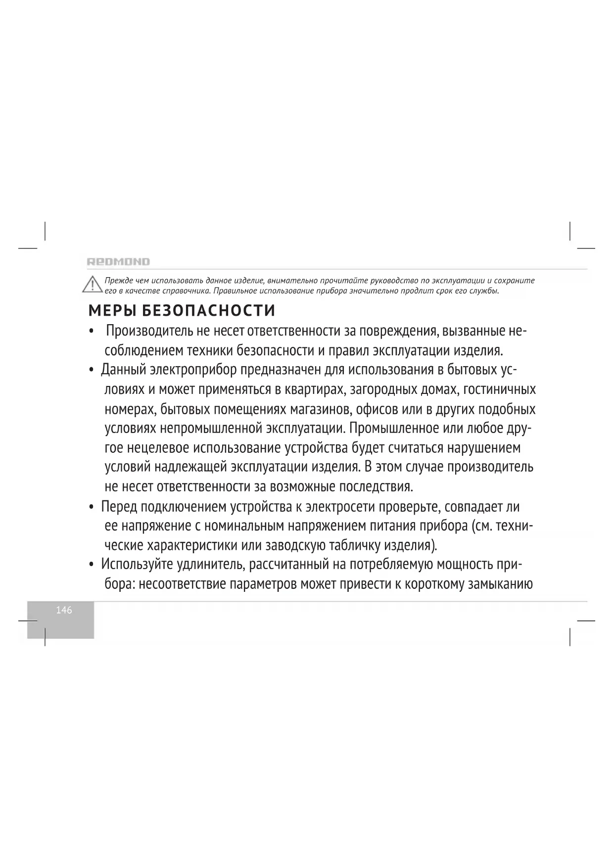 - Данный электроприбор предназначен для использования в бытовых ус- ловиях и может применяться в квартирах, загородных домах, гостиничных номерах, бытовых помещениях магазинов, офисов или в других подобных условиях непромышленной эксплуатации. Промышленное или любое дру- гое нецелевое использование устройства будет считаться нарушением условий надлежащей эксплуатации изделия. В этом случае производитель не несет ответственности за возможные последствия.