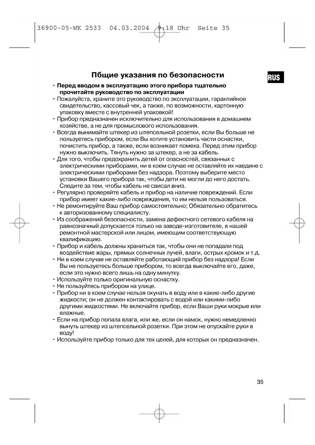 RUS 36900-05-WK 2533 04.03.2004 9:18 Uhr Seite 35Специальные указания по безопасности для этого прибора