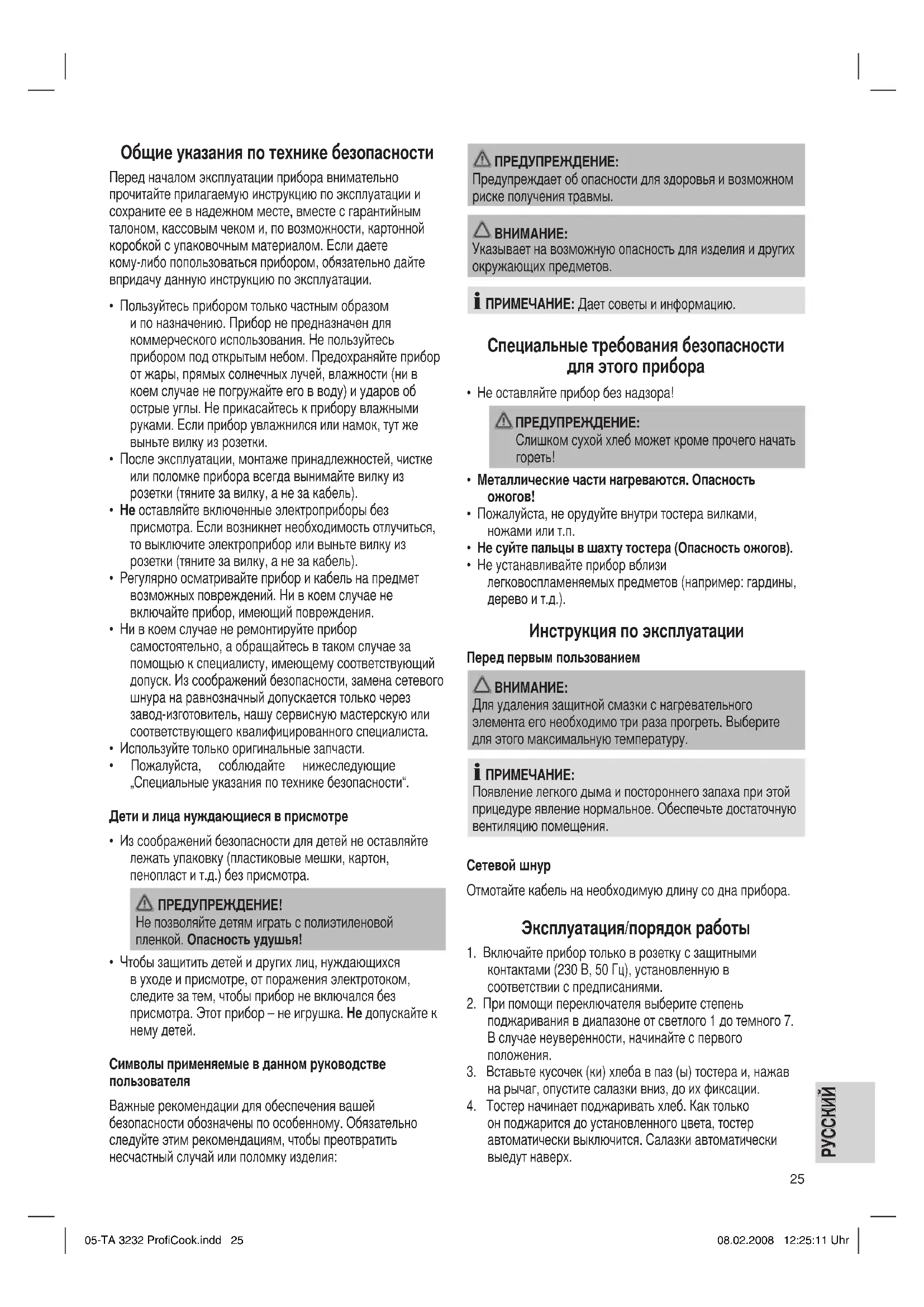 он поджарится до установленного цвета, тостер автоматически выключится. Салазки автоматически выедут наверх. 05-TA 3232 ProfiCook.indd 2505-TA 3232 ProfiCook.indd 25 08.02.2008 12:25:11 Uhr08.02.2008 12:25:11 Uhr26