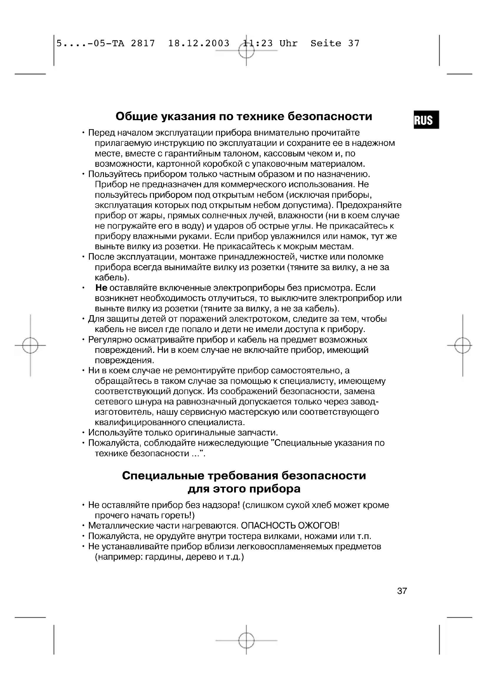 - Ne laissez pas fonctionner l'appareil sans surveillance! (Le pain très sec peut parfois commencer à brûler dans le grille-pain!)