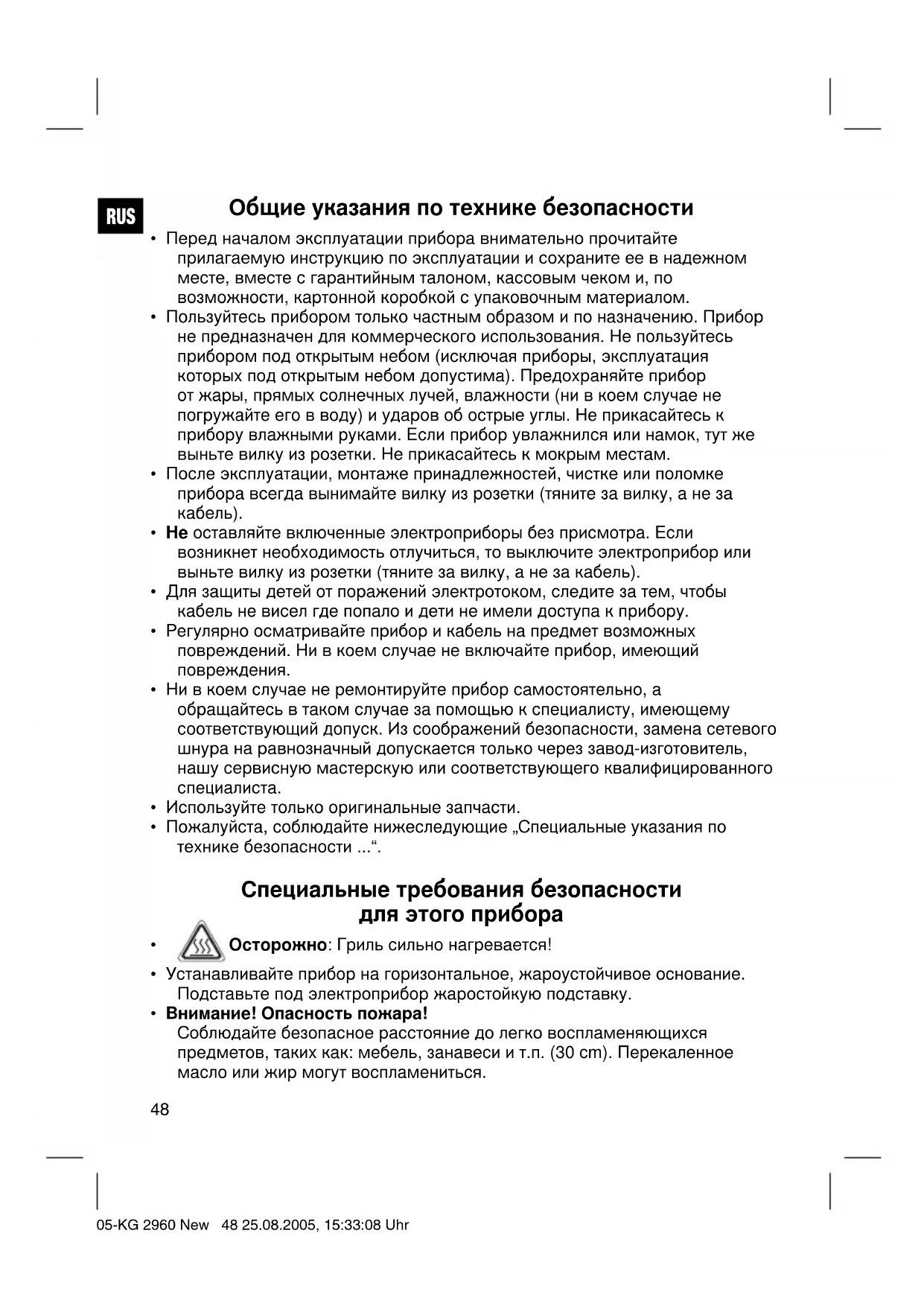 Чтобы выключить гриль выньте штепсель из розетки. 05-KG 2960 New 49 25.08.2005, 15:33:09 UhrRUS