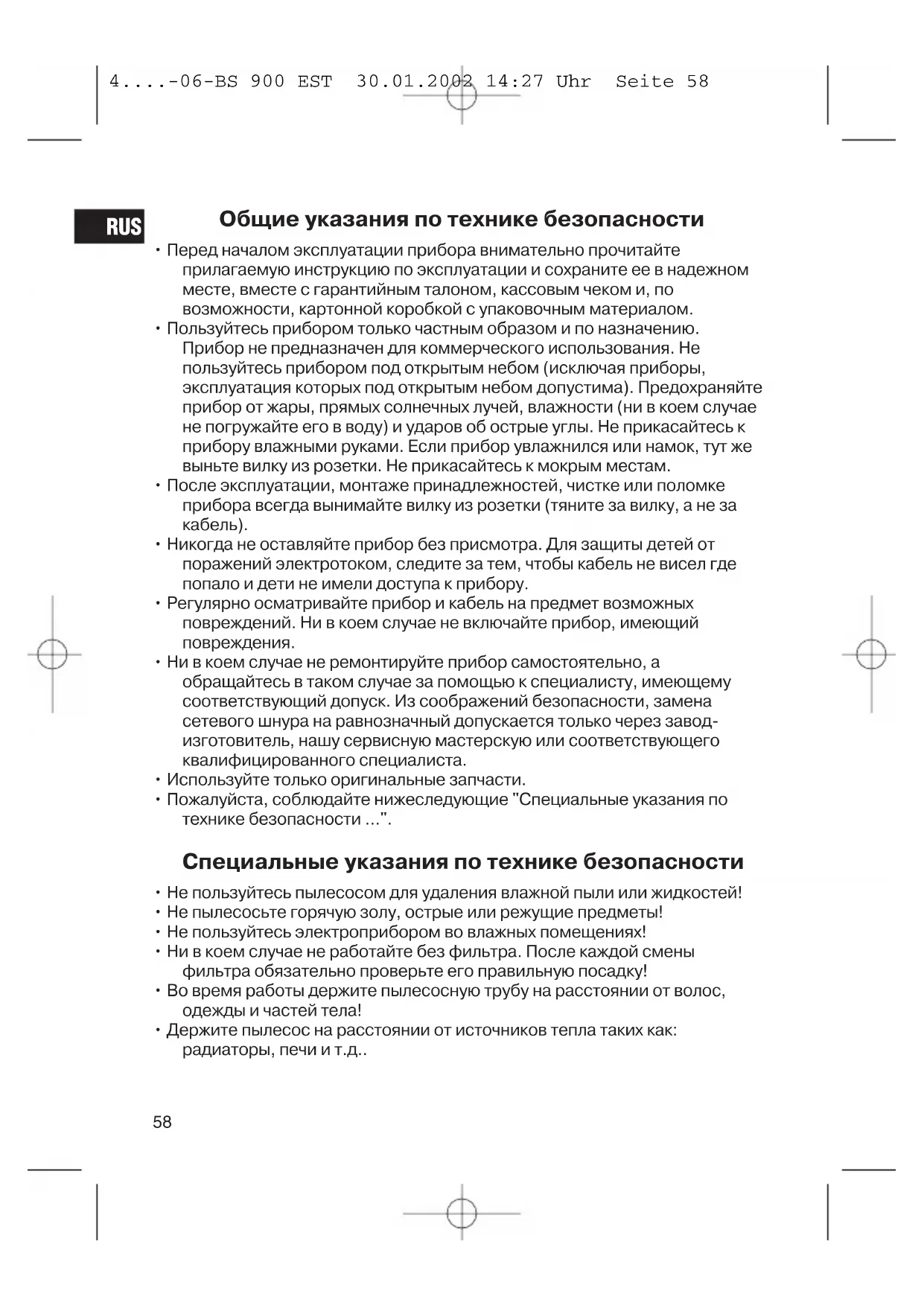 4....-06-BS 900 EST 30.01.2002 14:27 Uhr Seite 57Общие указания по технике безопасности