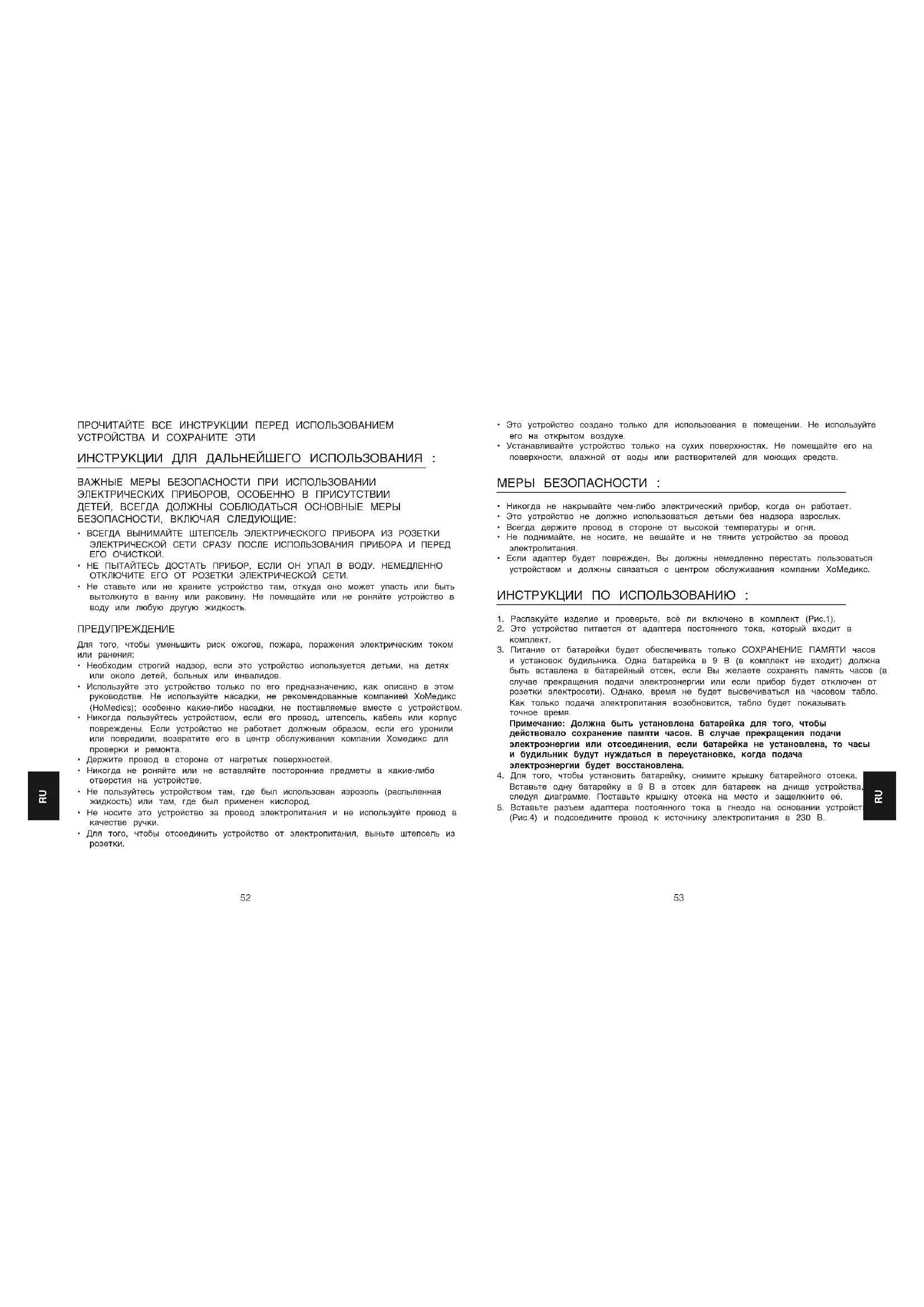 - Используйте это устройство только по его предназначению, как описано в этом руководстве. Не используйте насадки, не рекомендованные компанией ХоМедикс (HoMedics); особенно какие-либо насадки, не поставляемые вместе с устройством.